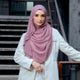 0Waverly So is an instant slip-on, with a shawl face look. The name is inspired by the wavy ruffles on the side. This hijab is very easy to wear, and the length is nicely modest, front, and back.