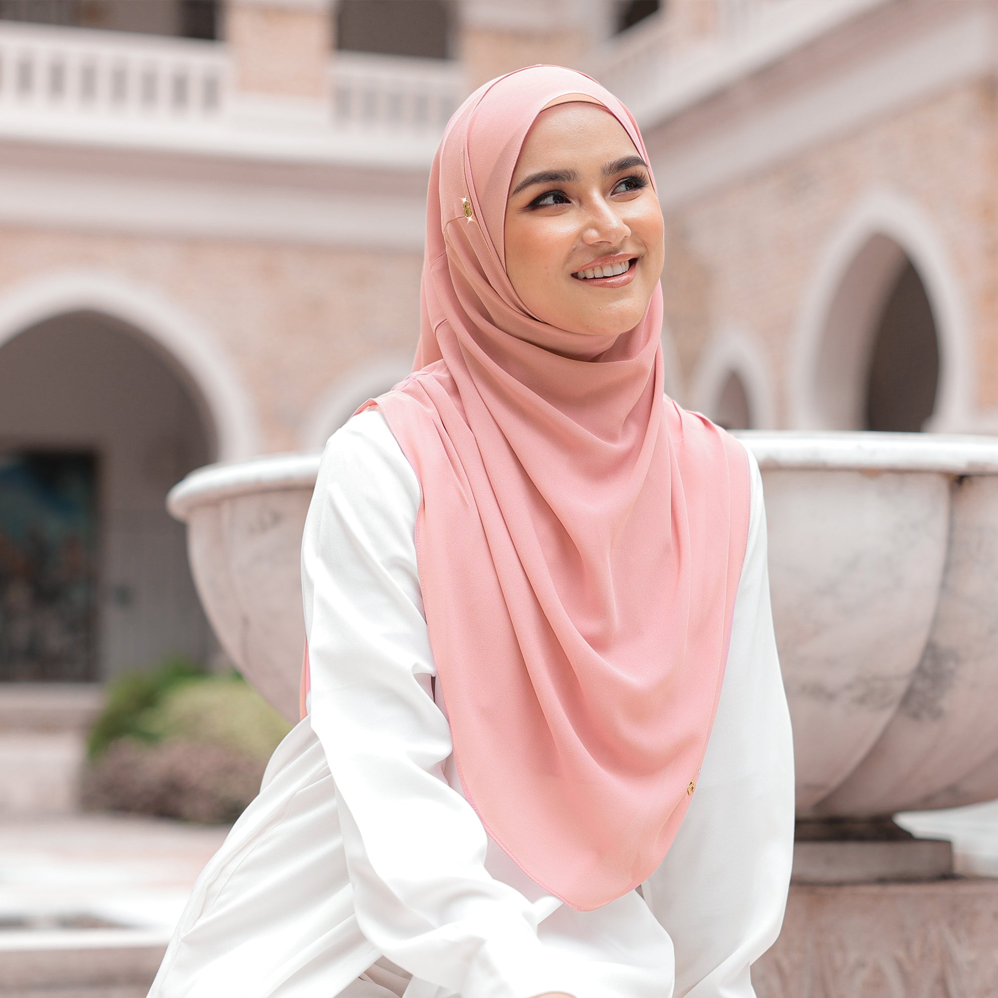• DetailsIt comes with a pair of our H pendant. This hijab as pleat at the side (shoulder)There are 2 layers made of Premium Heavy Chiffon to ensure the hijab is not see-through.