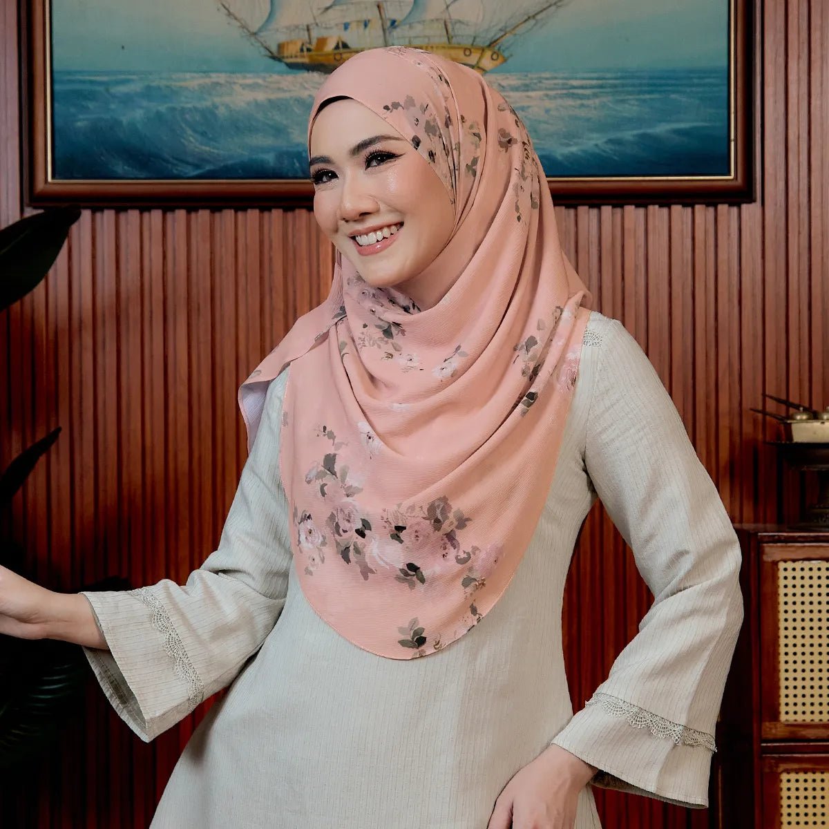 • Theme: Each hijab features delicate floral patterns and intricately drawn lining flowers. The warm and earthy color palette reflects the natural hues of the savannah, creating a harmonious blend of style and grace.