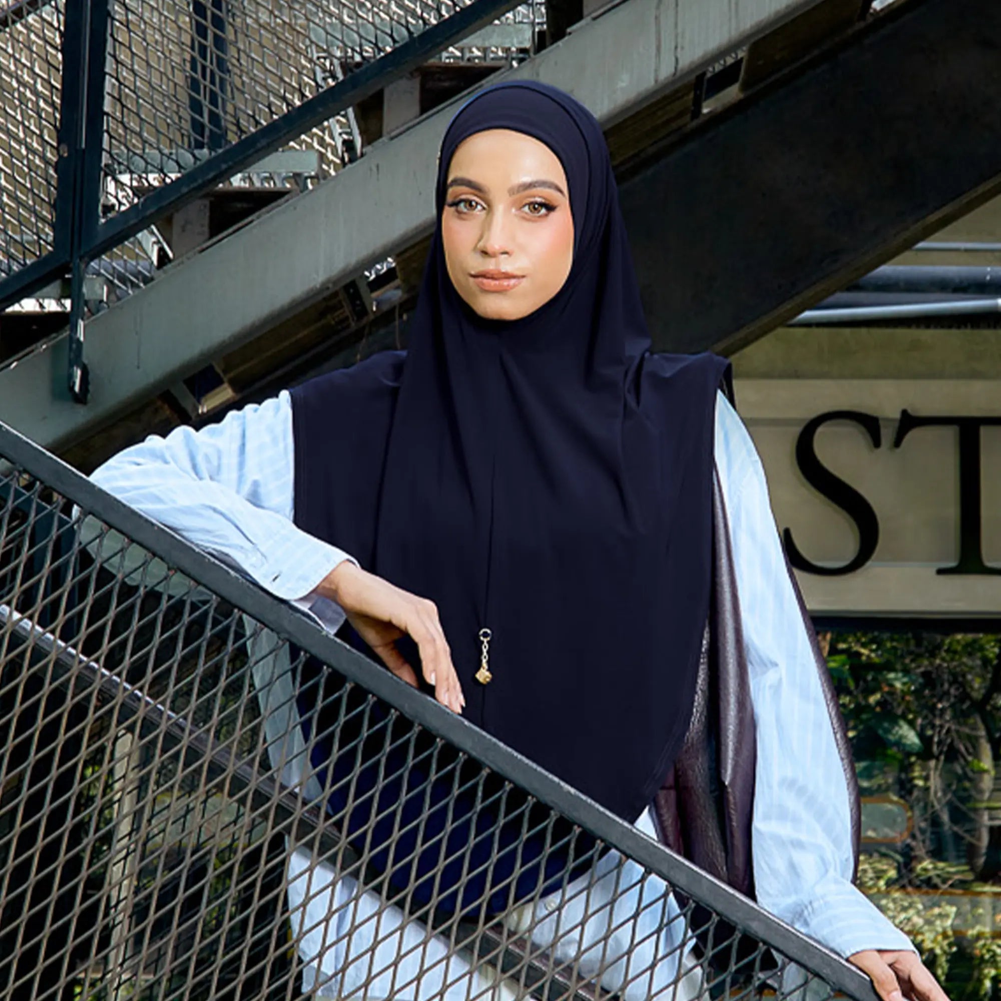 SO-ALEXA is our latest hijab made to look like you’re wearing two layers when it’s actually just one.