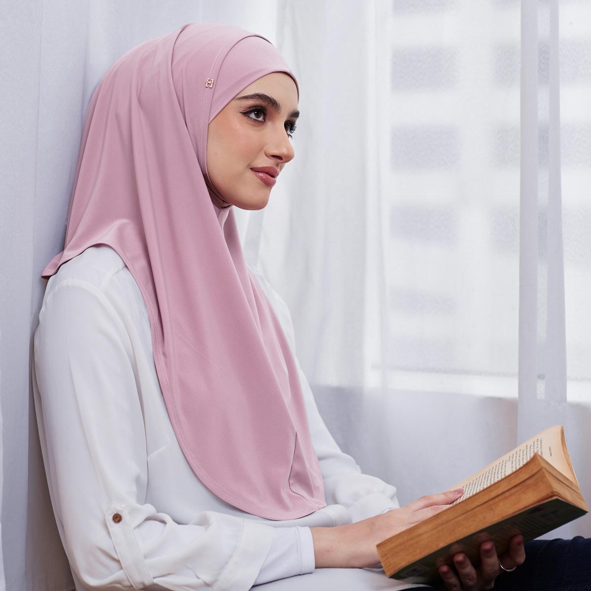 Although it is such a simple hijab, So-Jenna exudes elegance in its minimalism. The hijab cutting is very nice, oval and modest, making the hijabi looks very slender. It is made with Premium Knitted Lycra material that makes the hijab drapes nicely on the body. The fabric is soft and ironless, which is a great PLUS!