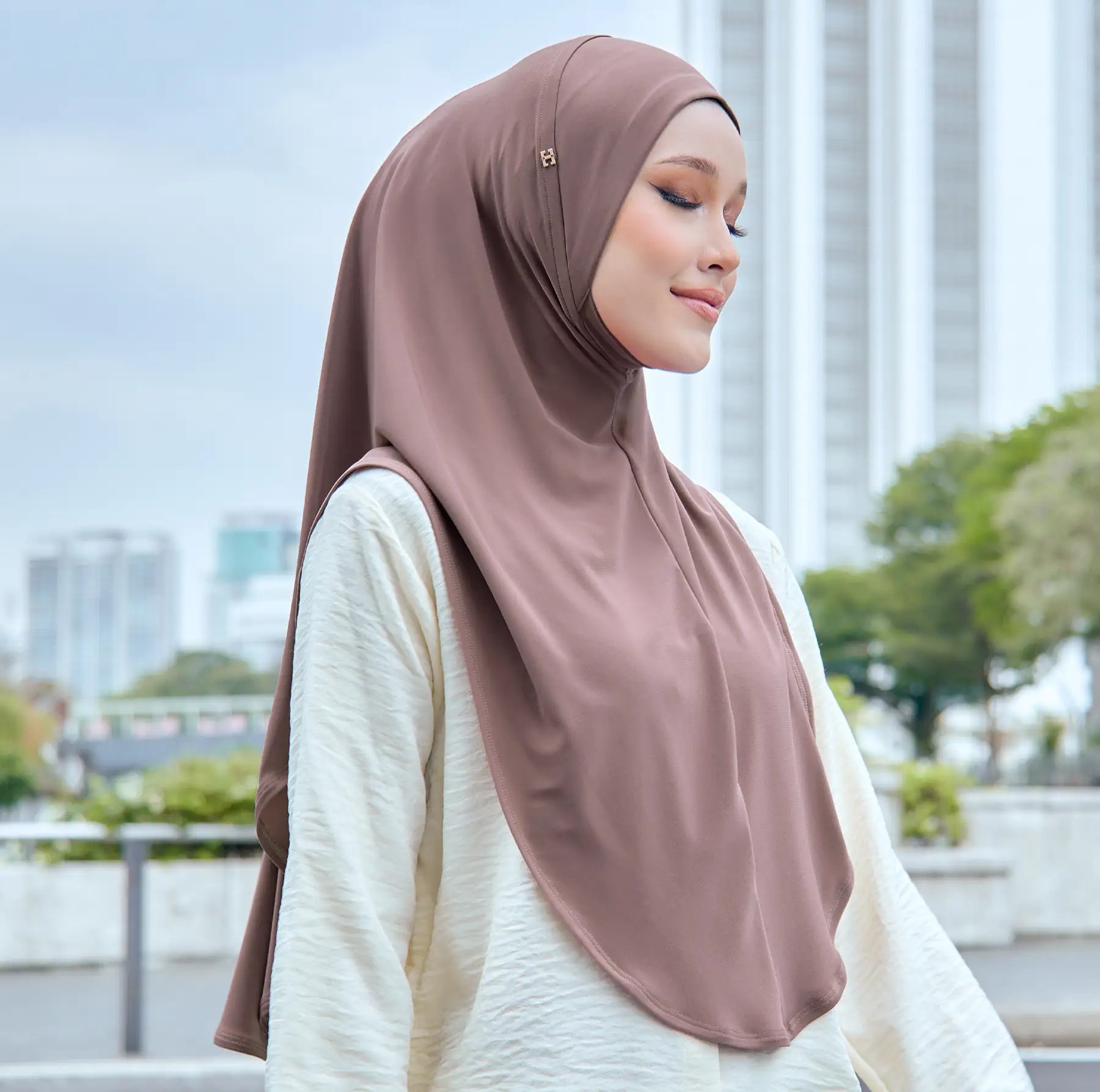 Theme: Lana SSC, where sophistication meets innovation, stands for Slim & Structured Awning with Chin Covering. Indulge in a hijab that's meticulously crafted to enhance your natural beauty with a touch of modern flair. Experience a new level of elegance and confidence as you step into the world with Lana SSC.