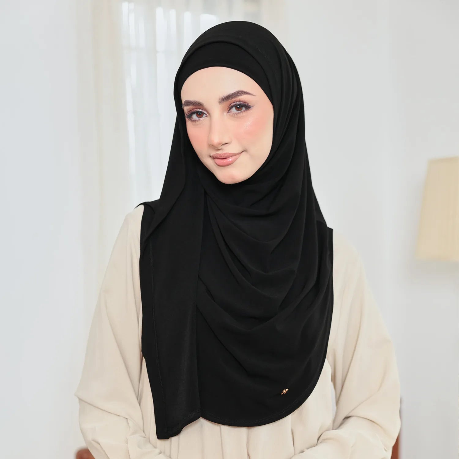 SO-STYLEEN is designed with a drape that falls neatly from one side down, giving you that styled look without any effort. It’s an instant hijab that also helps cover chubby cheeks perfect if you want something flattering and easy.