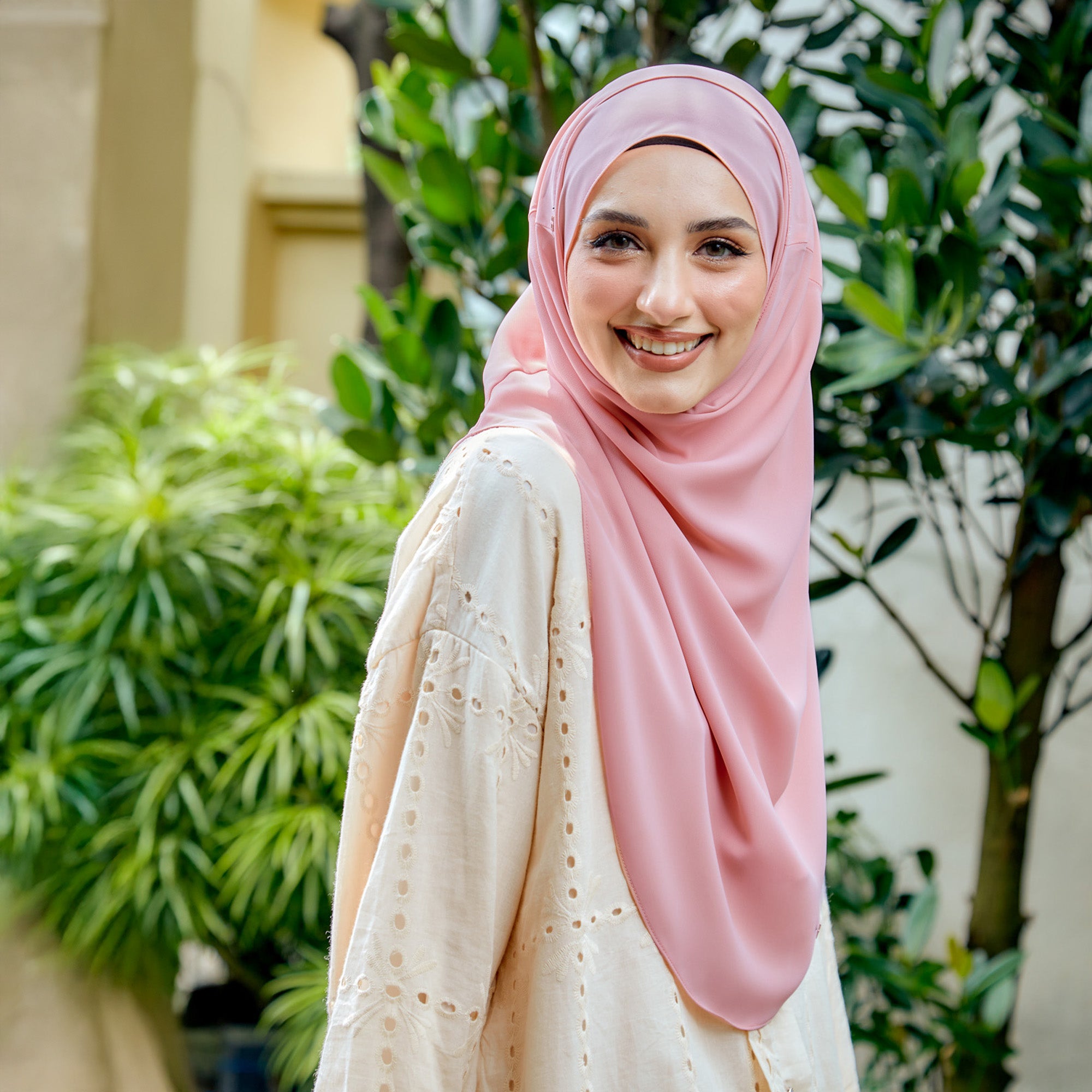 Introducing Softly-So, our new plain Slip-On hijab that’s different from Cutely-So. Crafted from Velvety Lattice Crepe, its unique shape and cutting create a super flowy, dreamy look.
