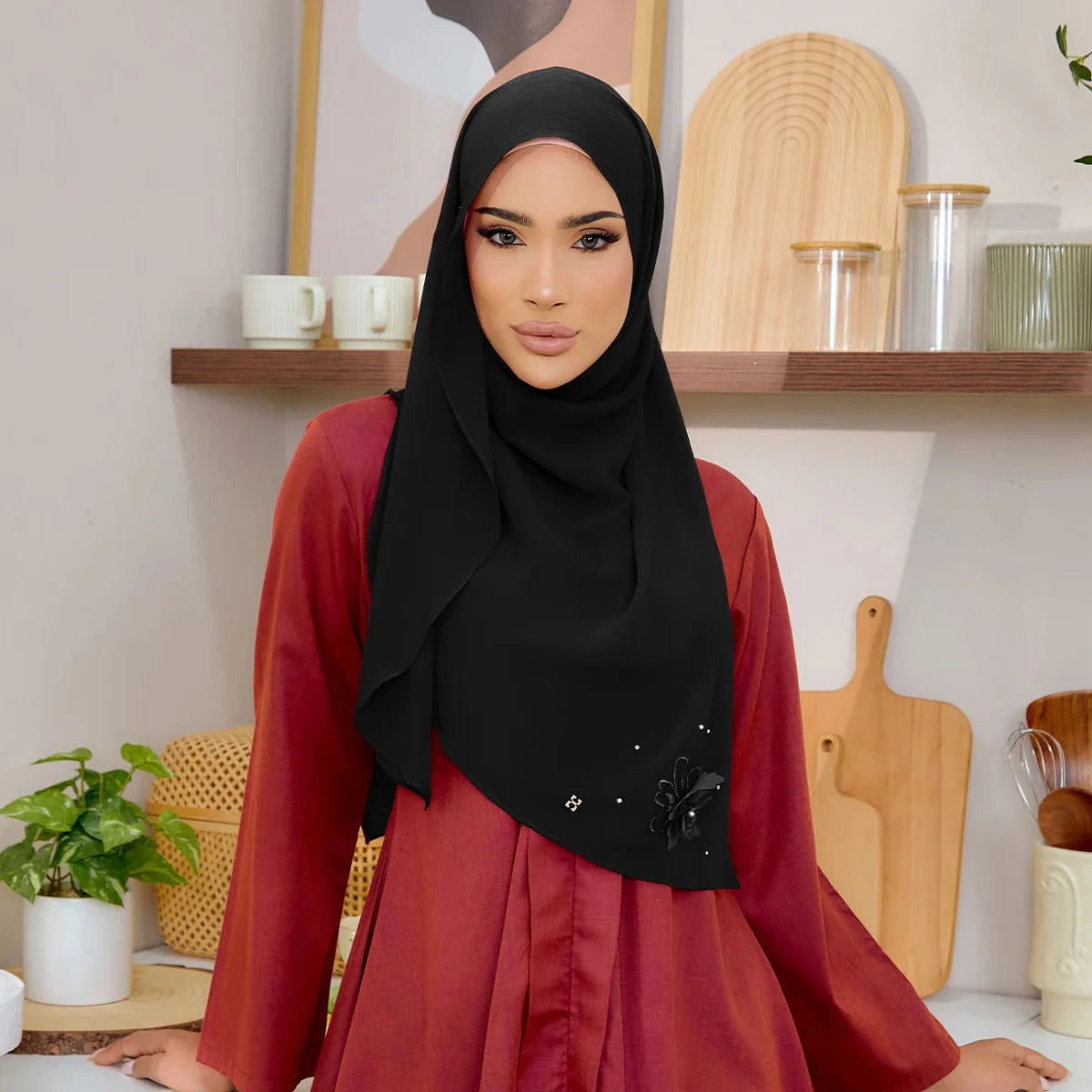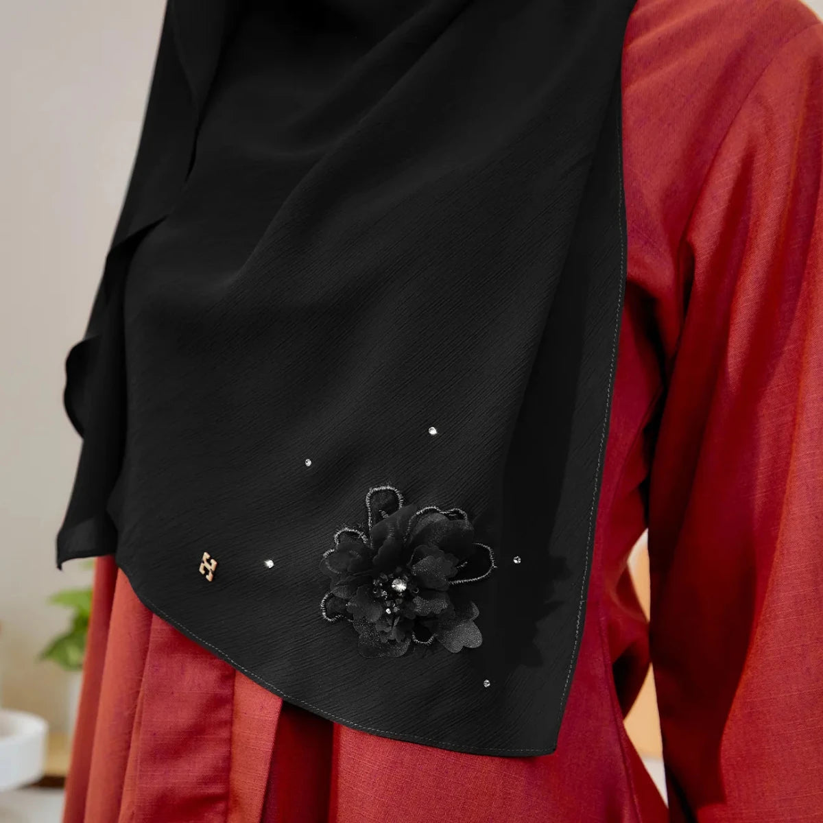 • Themes: Luxe Hanameeran blends beauty with practicality. Its graceful drape flows to the bottom, giving the appearance of a styled hijab with effortless ease.