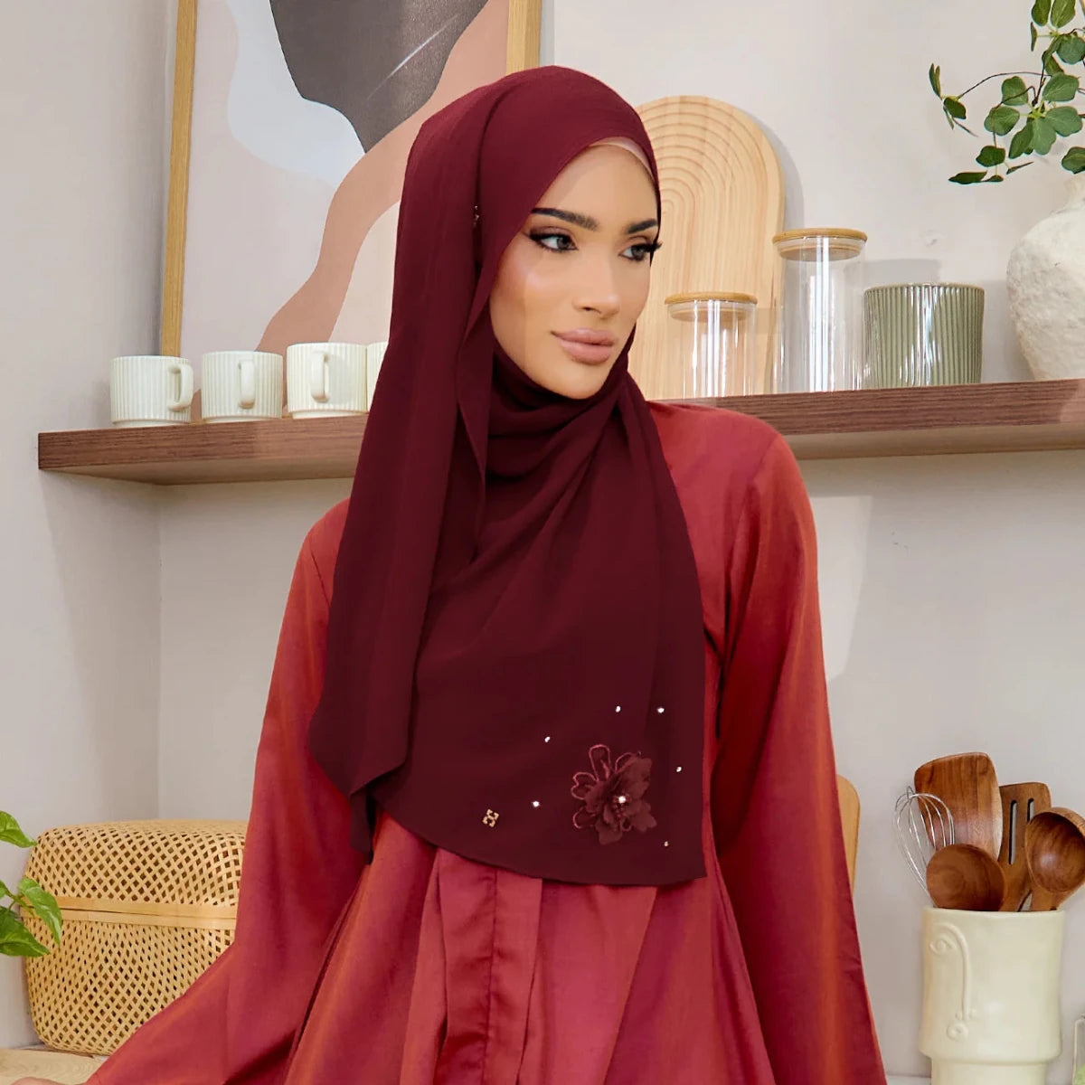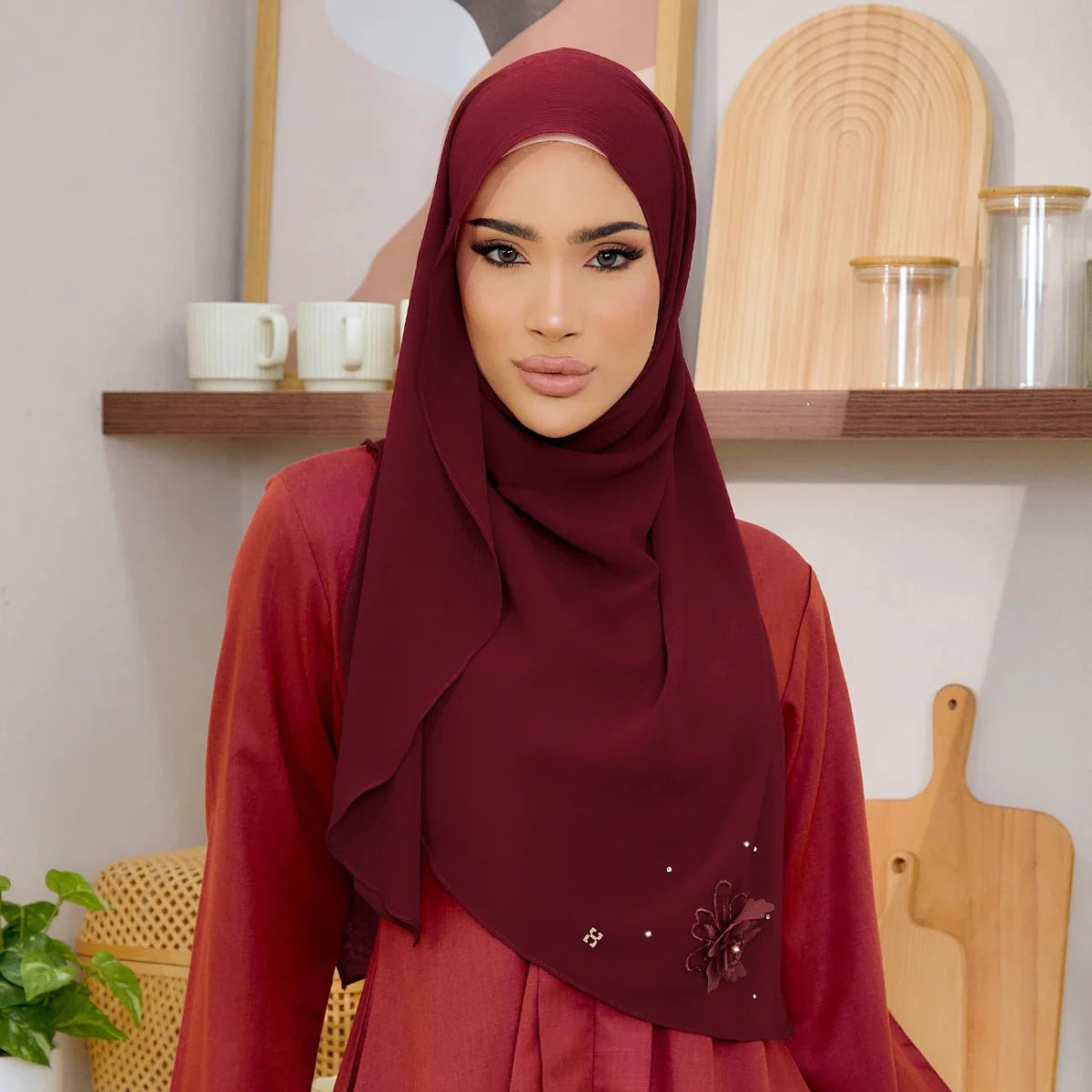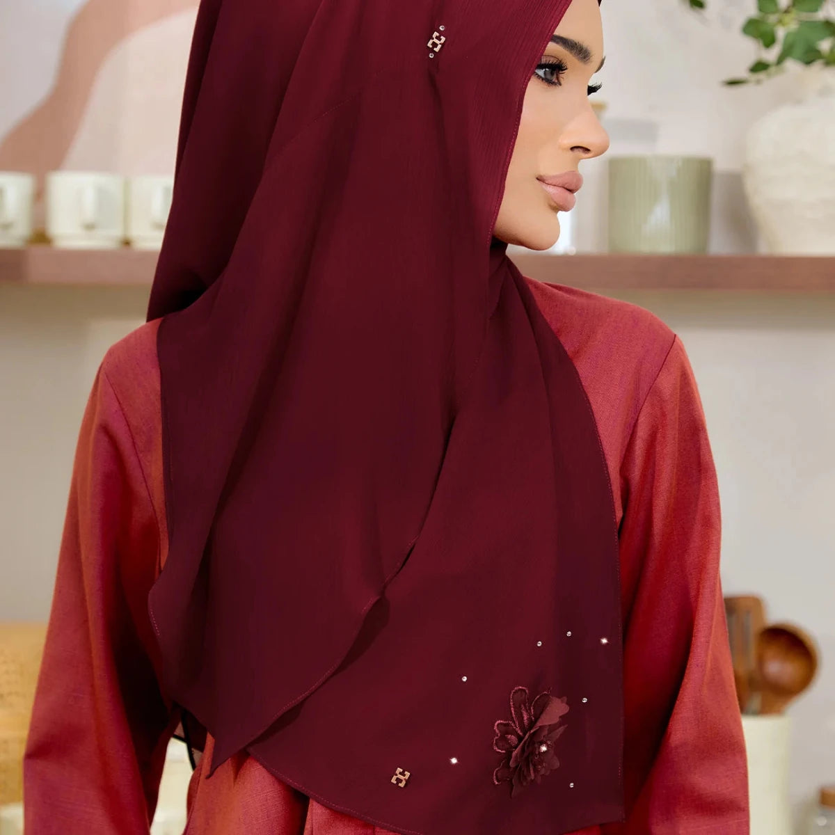 • Themes: Luxe Hanameeran blends beauty with practicality. Its graceful drape flows to the bottom, giving the appearance of a styled hijab with effortless ease.