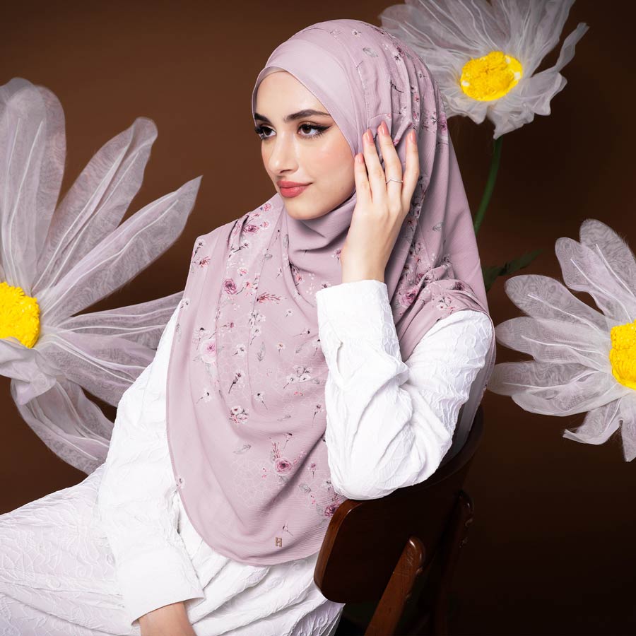 • Materials: Body & Awning - Custom Printed Textured Chiffon | There is a layer inside made of Premium Heavy Chiffon to ensure the hijab is not see-through.