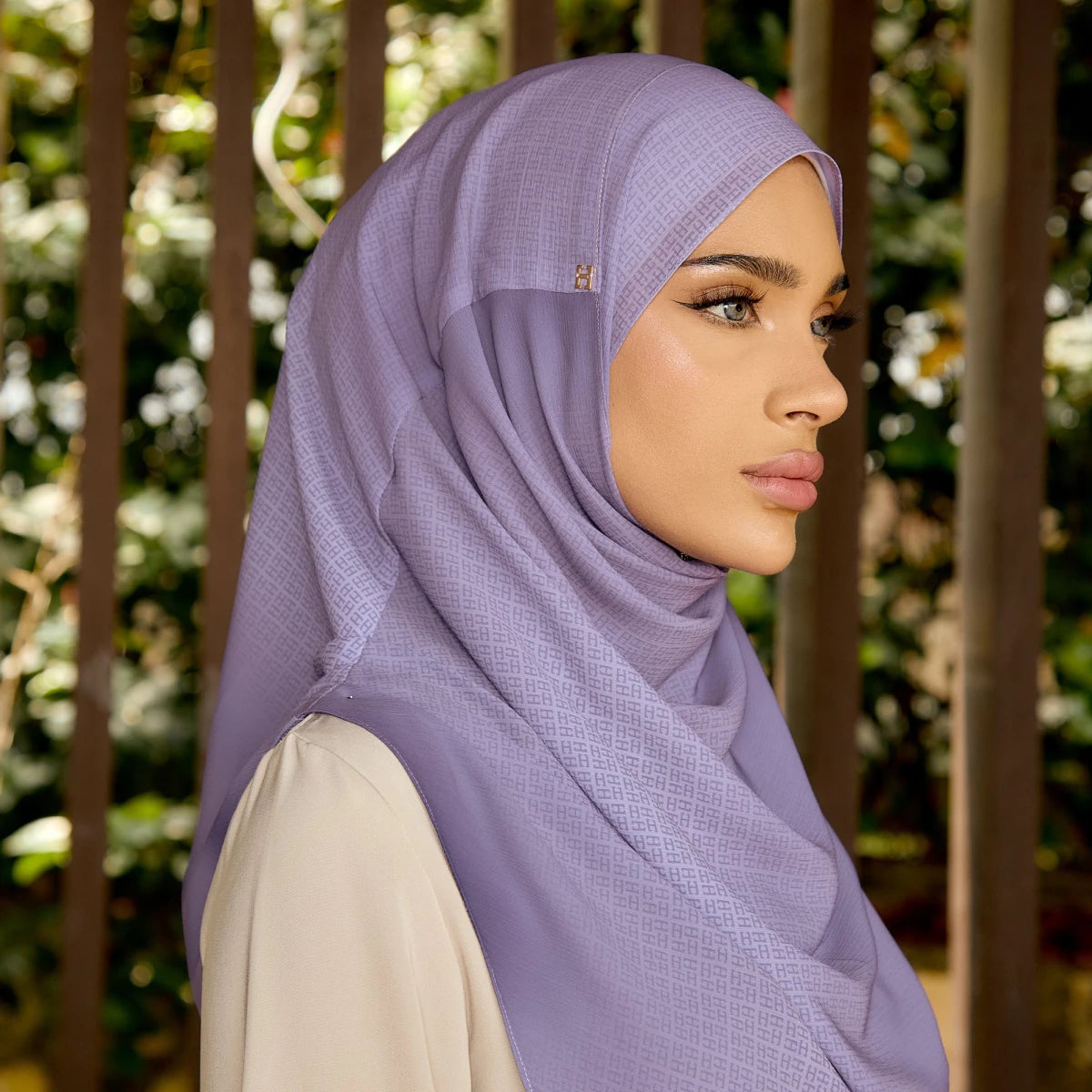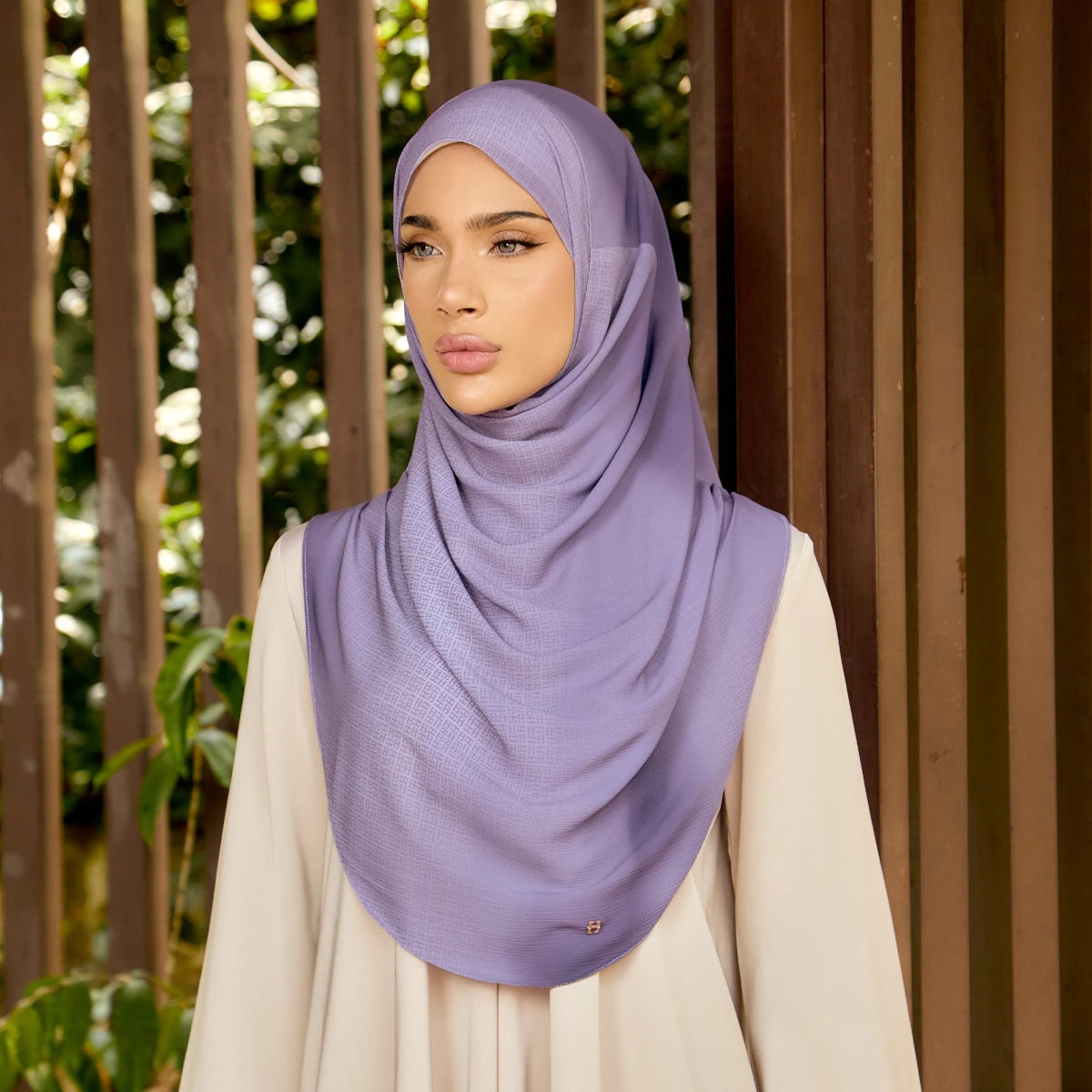 This design is highlighted with a delicate floral border with batik-inspired touches along the edge, adding a subtle yet charming touch that makes the hijab stand out without being too busy.