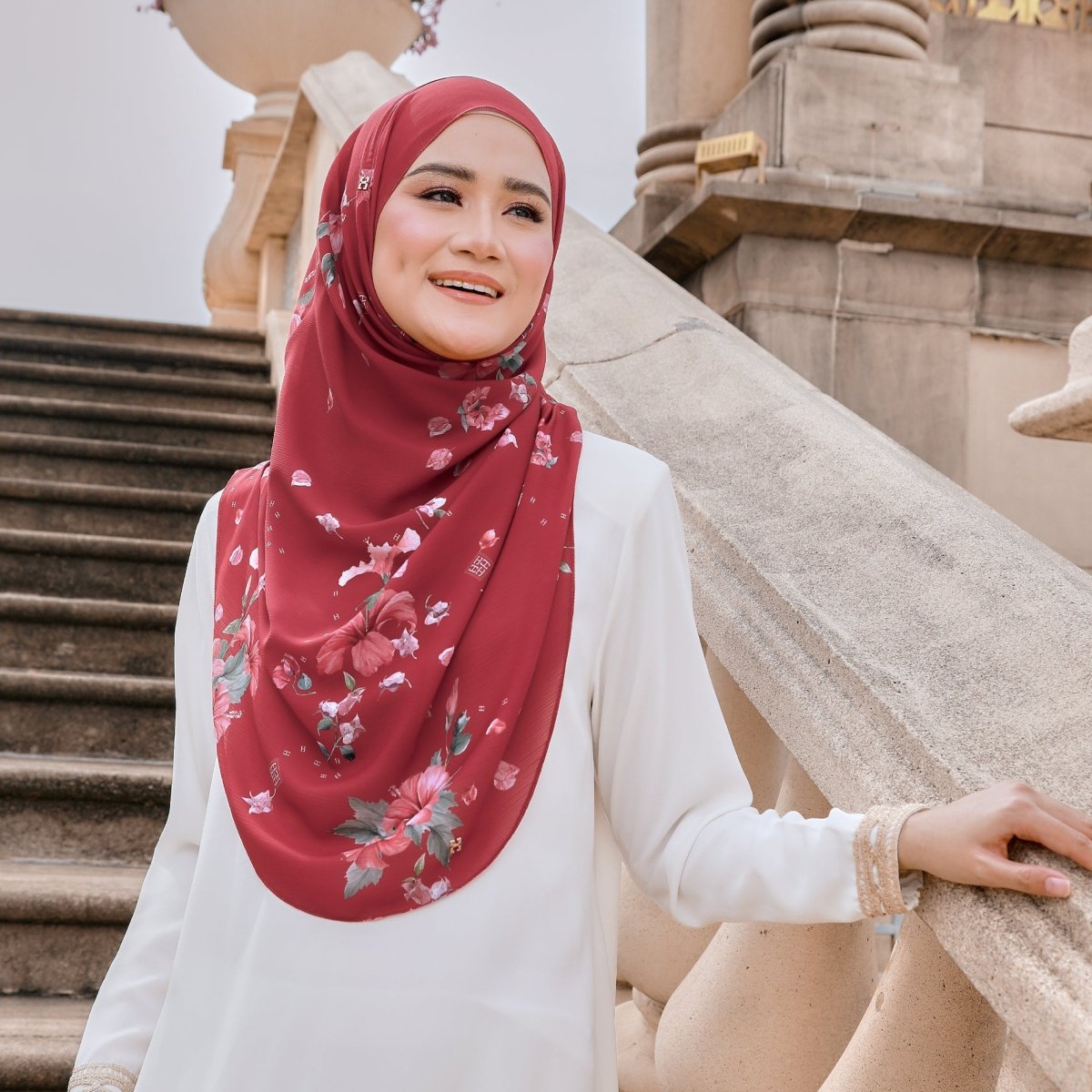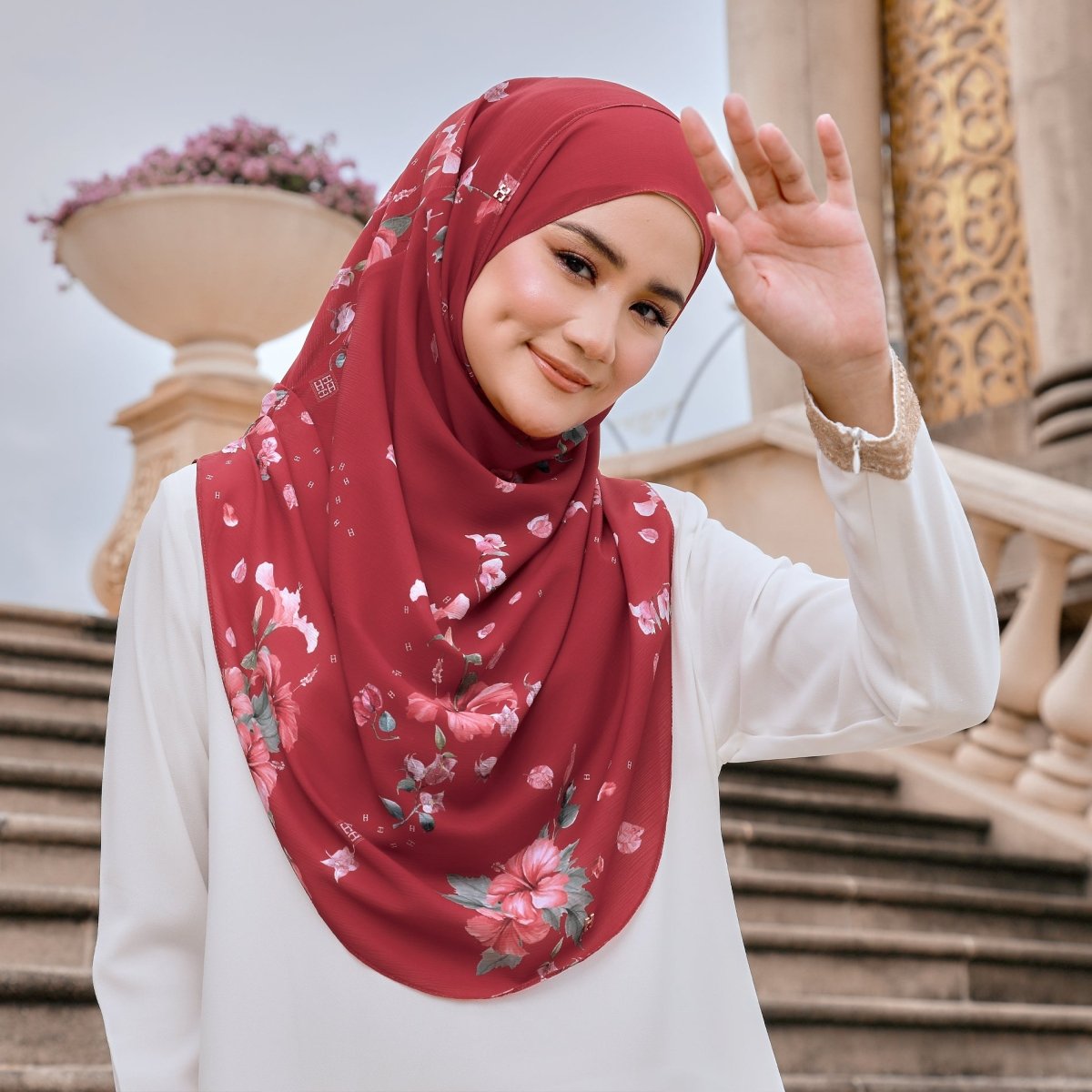 • Materials: Body & Awning - Custom Printed Textured Chiffon | There is a layer inside made of Premium Heavy Chiffon to ensure the hijab is not see-through.