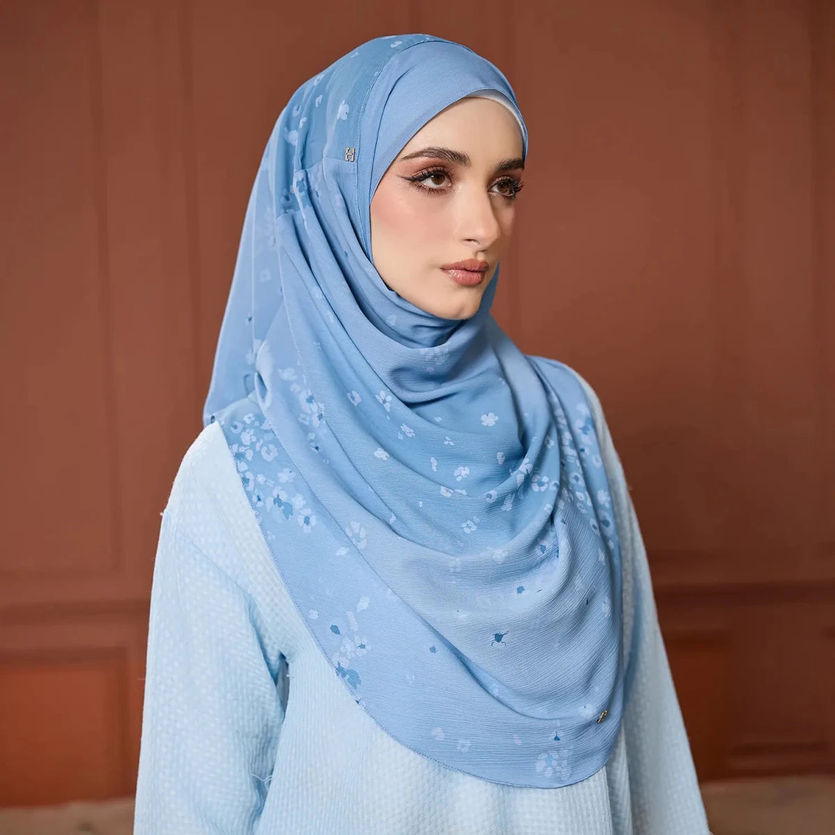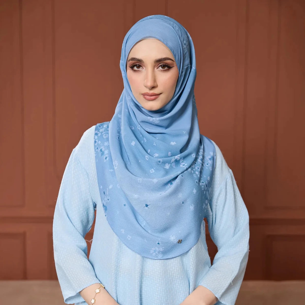 Instant / Slip-on hijab. No pin. No brooches Modest length with slim cutting on shoulder.