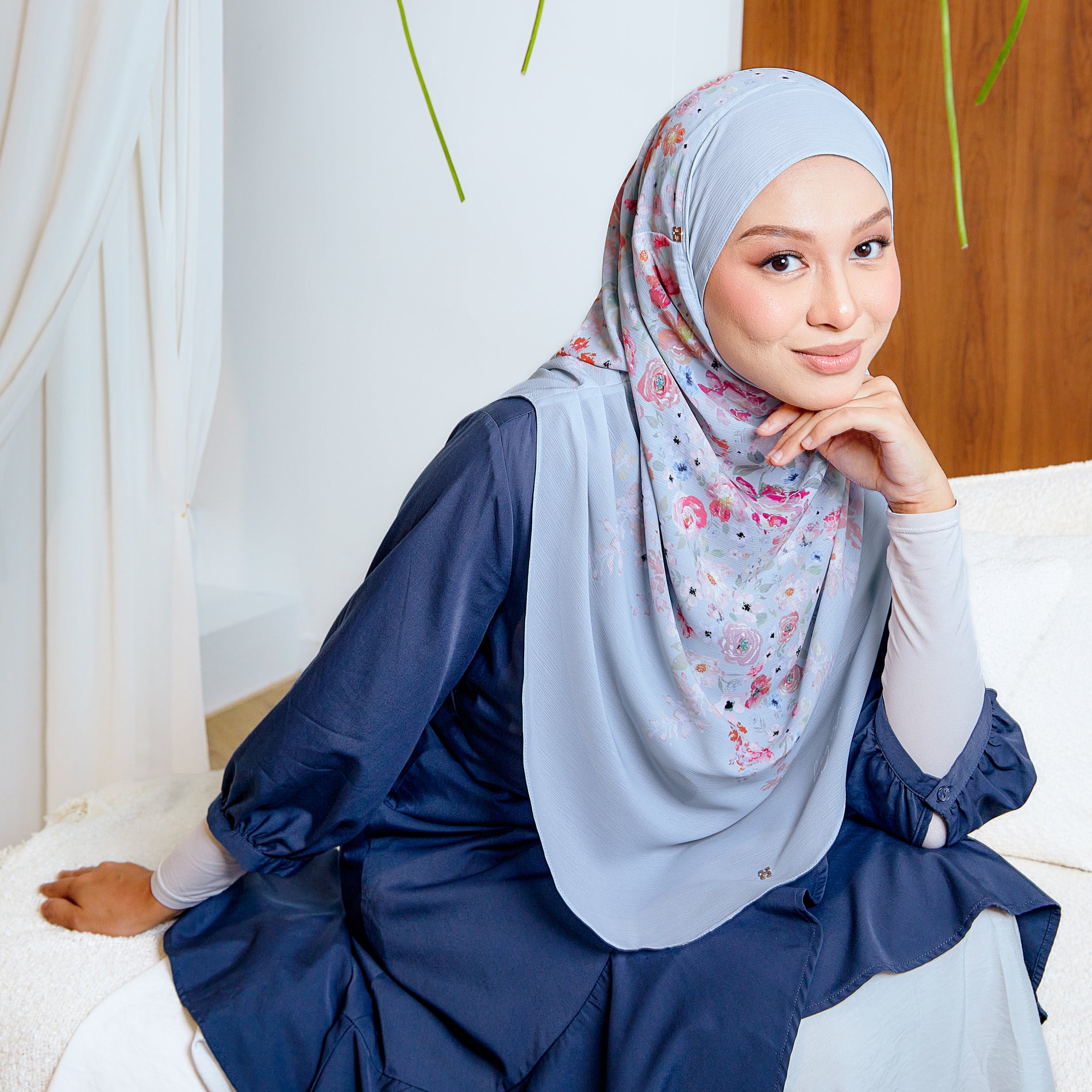 • Materials: Body & Awning - Custom Printed Textured Chiffon | There is a layer inside made of Premium Heavy Chiffon to ensure the hijab is not see-through.