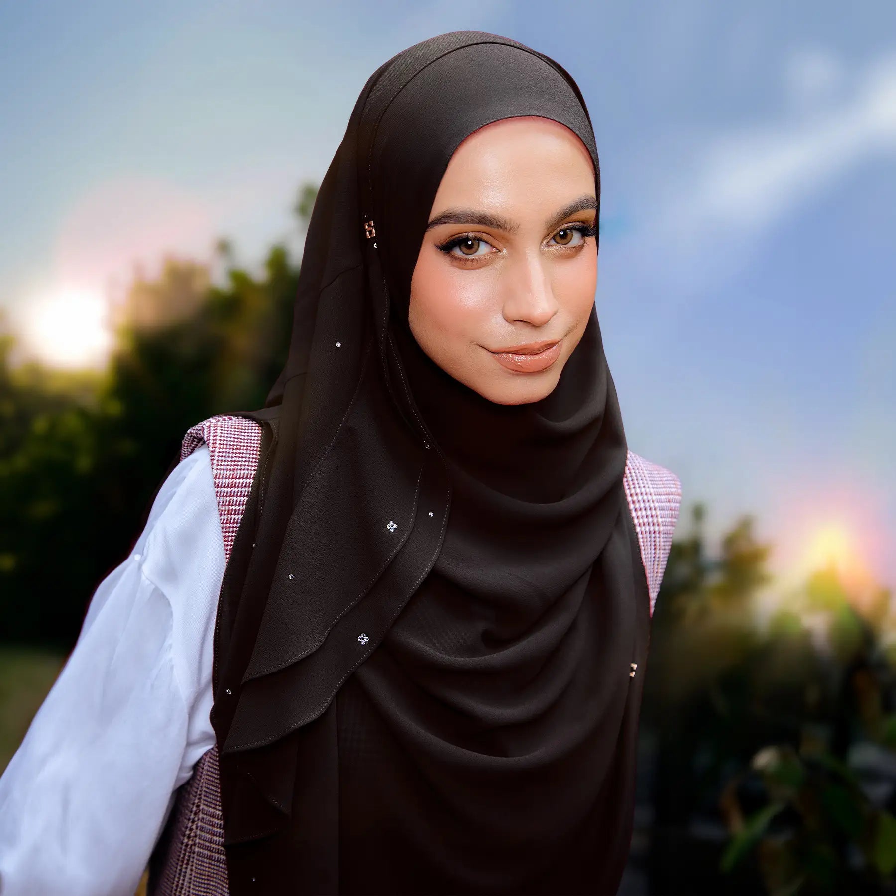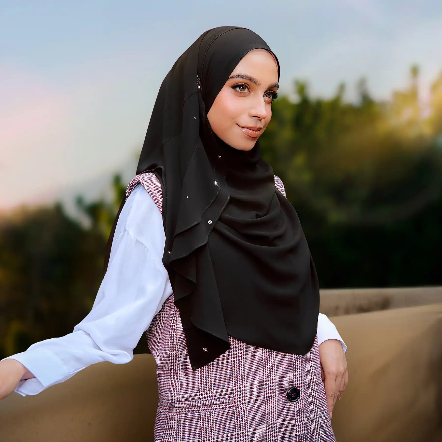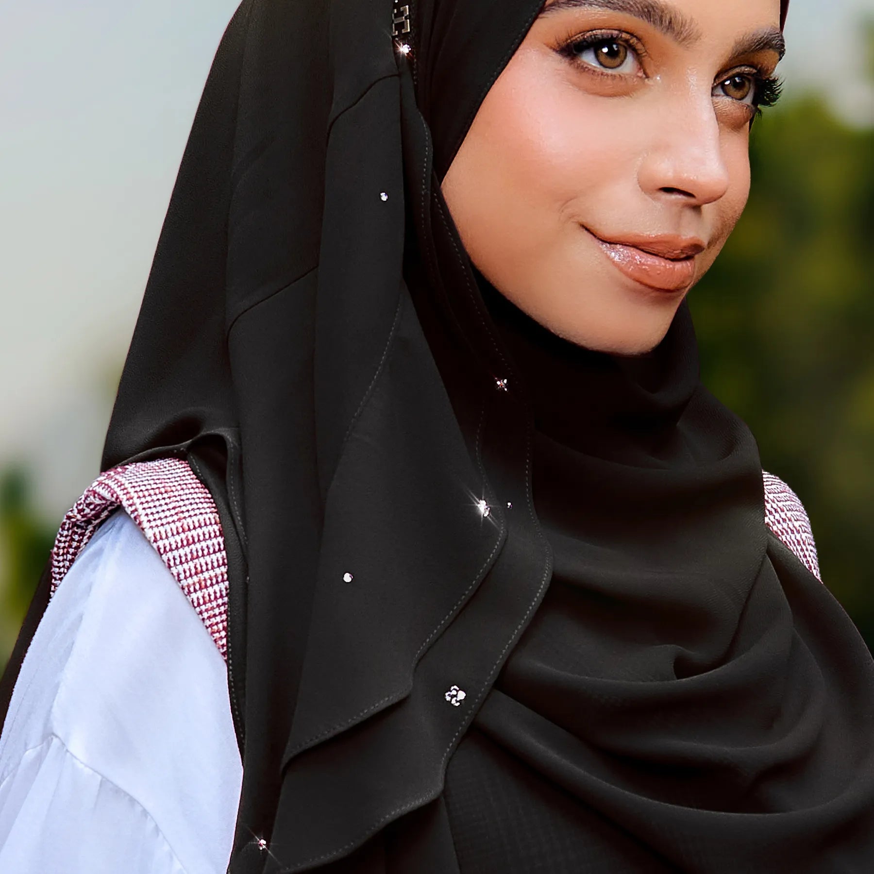 • Style: A Slip-On hijab, with a shawl, look on the face, and a frontal detailing that is so unique and sweet.