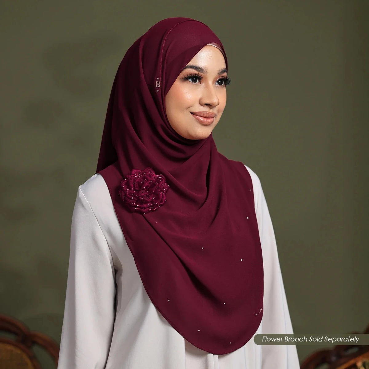 • Theme: Catalyna-So is adorned with delicate fine cut crystals, giving a subtle yet sophisticated shimmer. For a polished and versatile Raya look, it can be beautifully paired with Hegira’s matching brooch, designed to complement Catalyna-So perfectly.