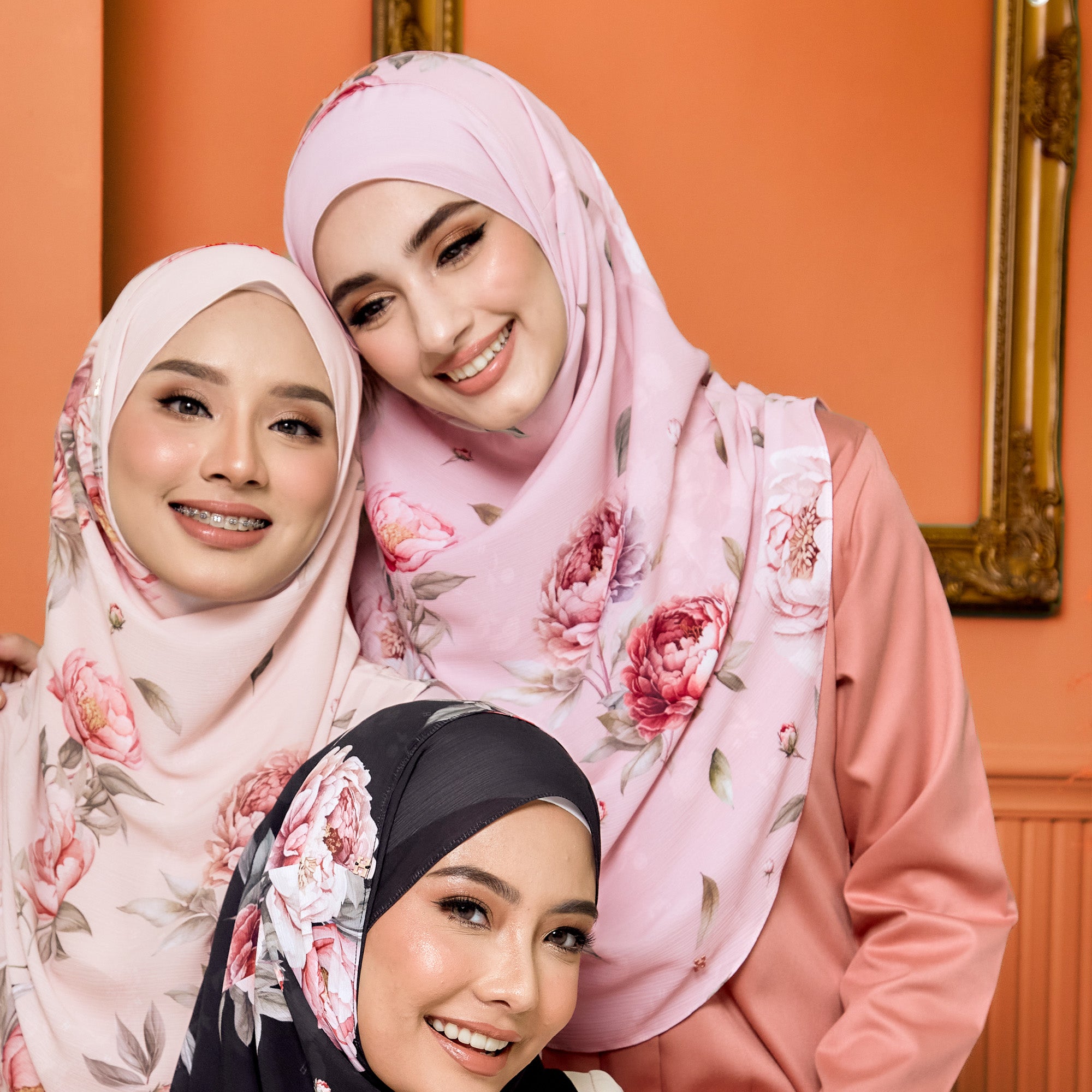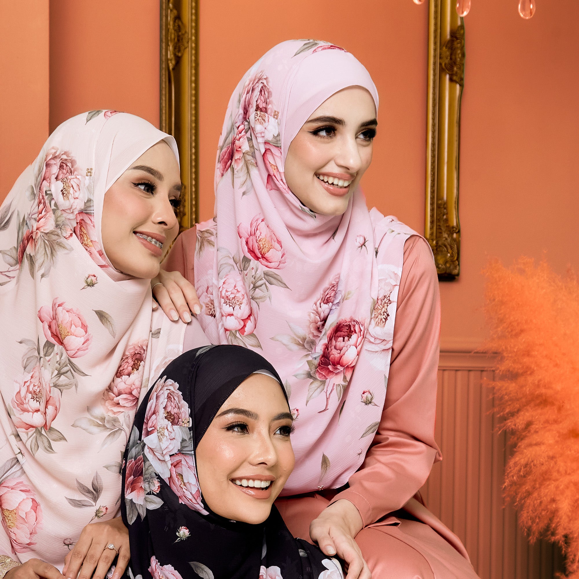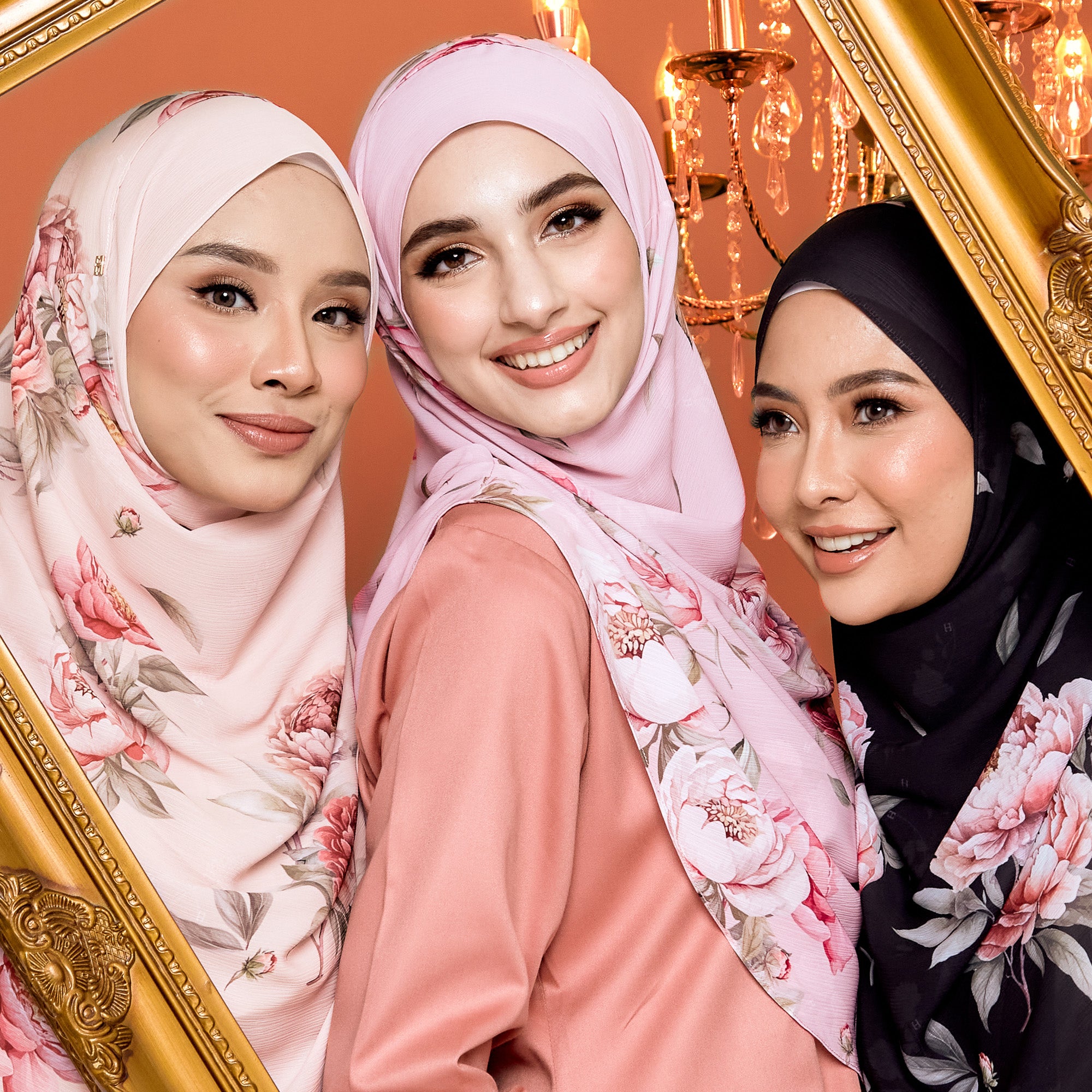 Materials: Body & Awning - Custom Printed Textured Chiffon | There is a layer inside made of Premium Heavy Chiffon to ensure the hijab is not see-through.