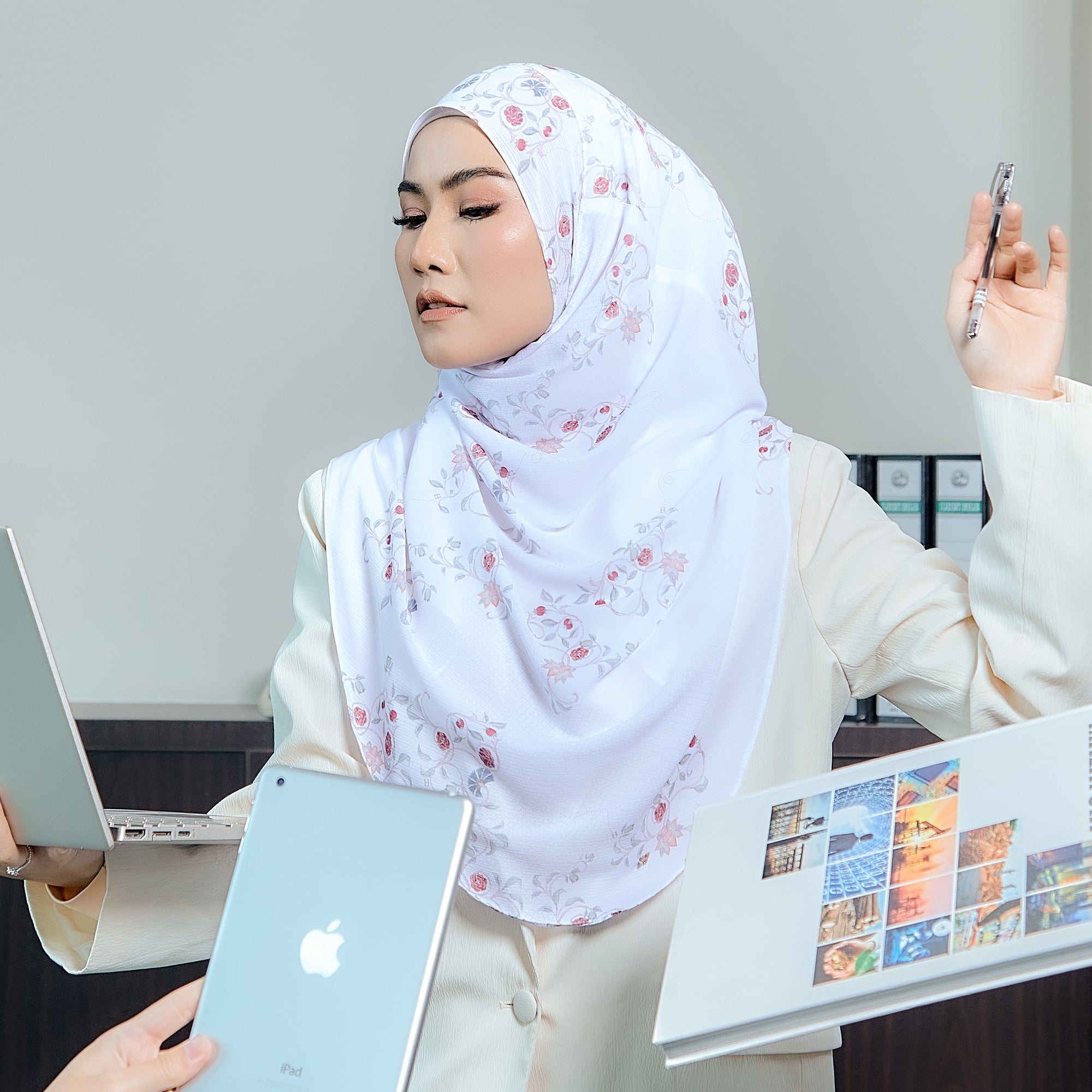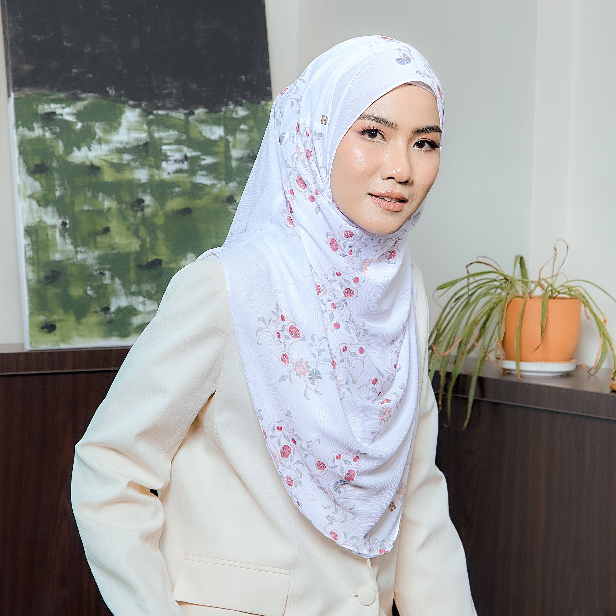• Themes: Inspired by the delicate allure of cherry blossoms, this hijab features a graceful blend of soft hues and intricate patterns that exude sophistication.