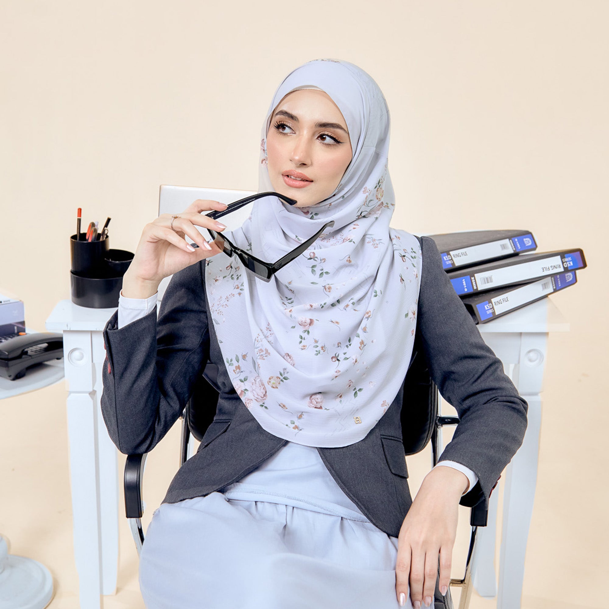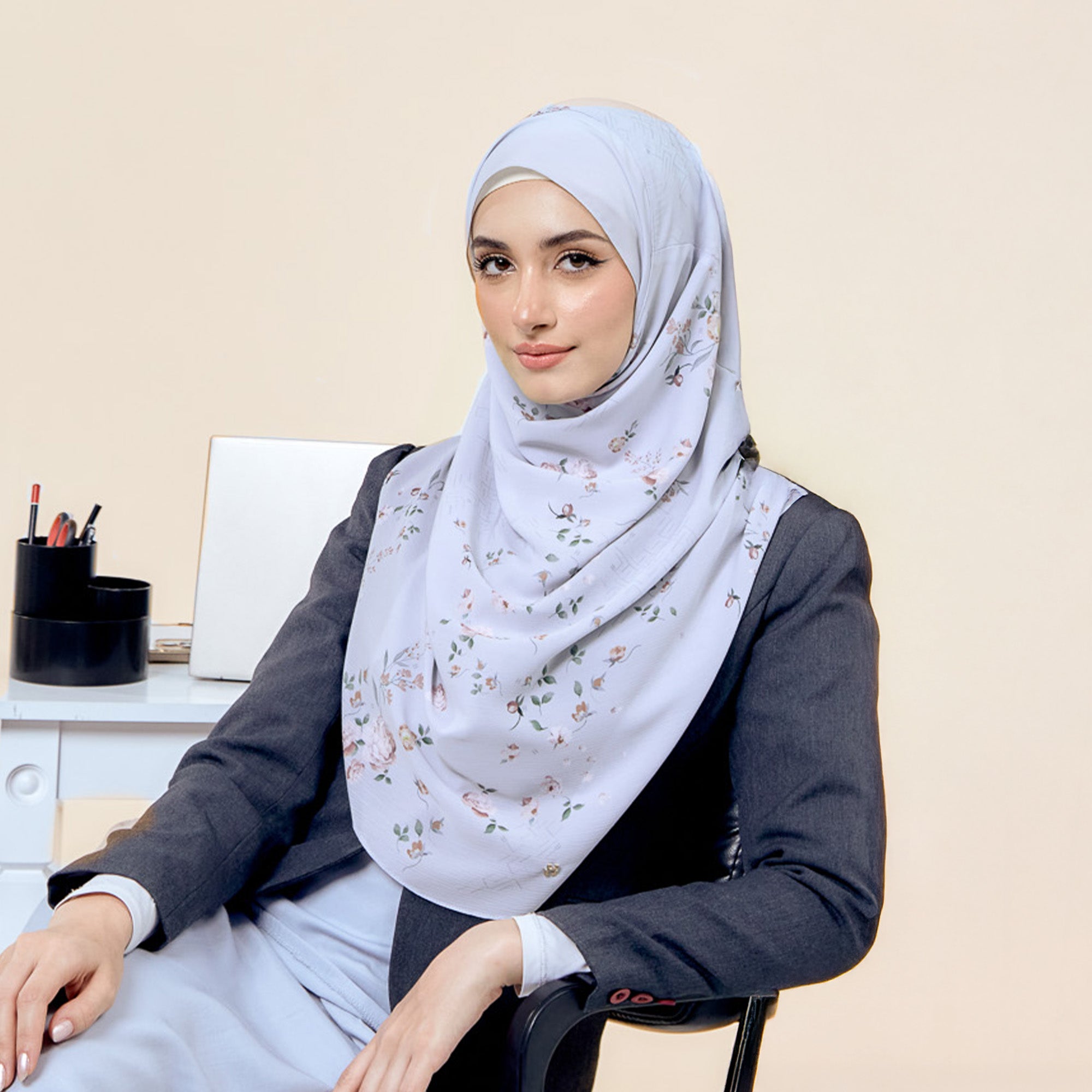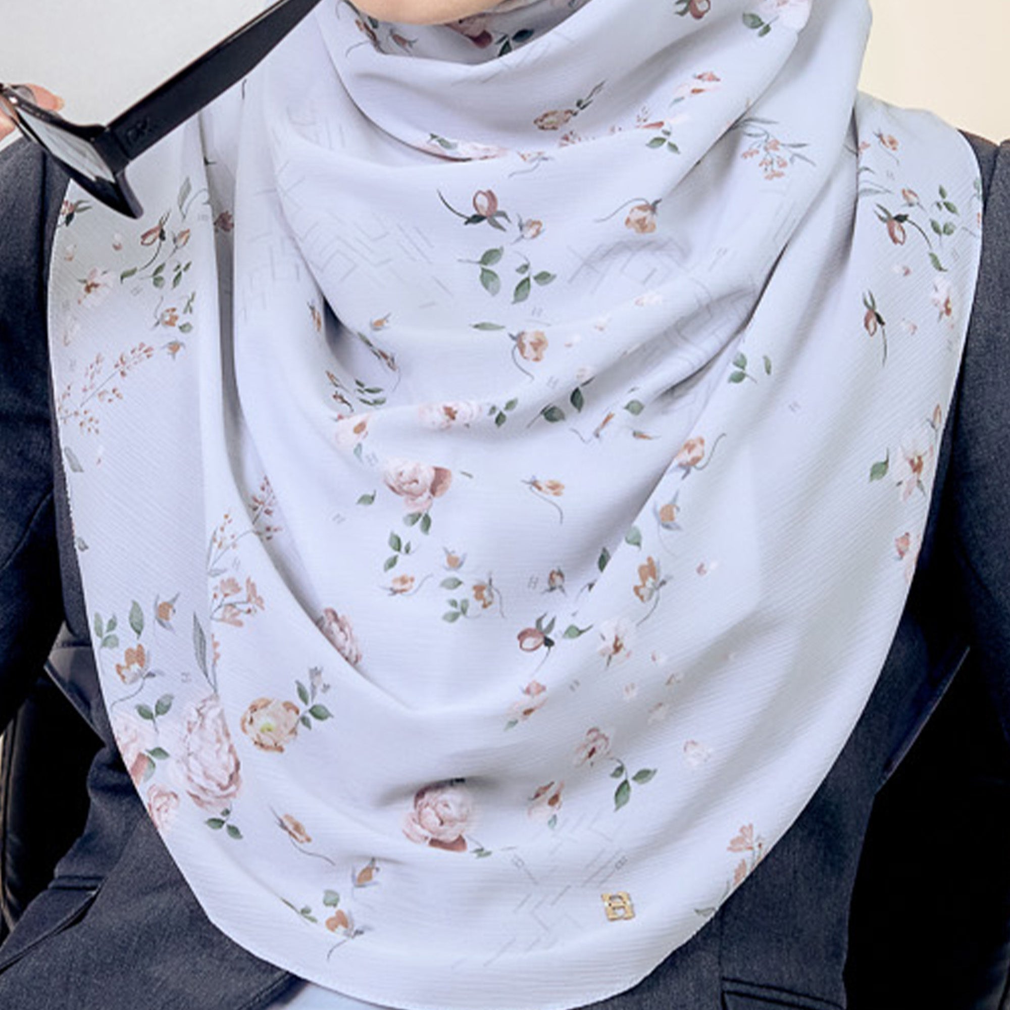 The hijab has pleats on the side (shoulder) and comes in Cutting options for LOT 1.