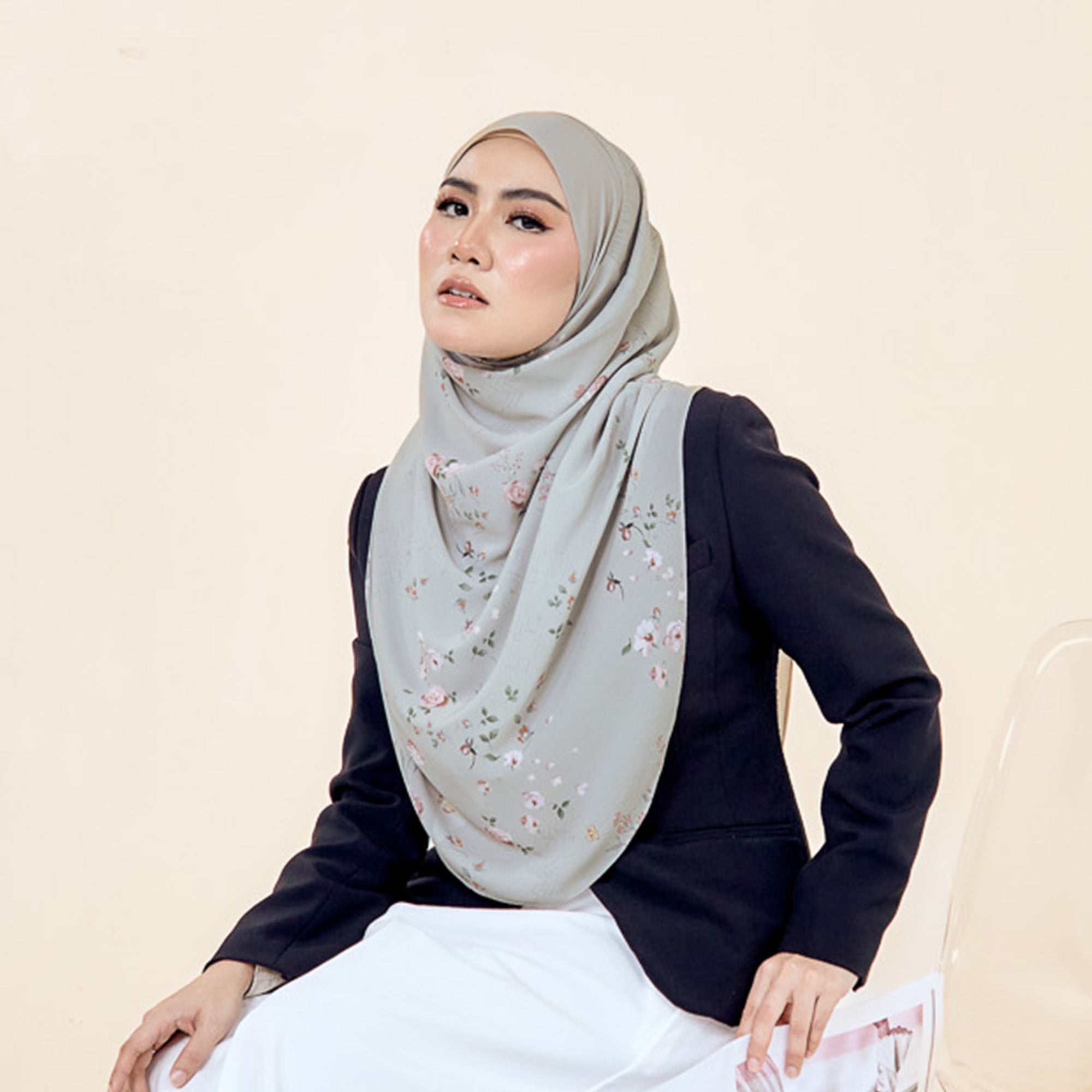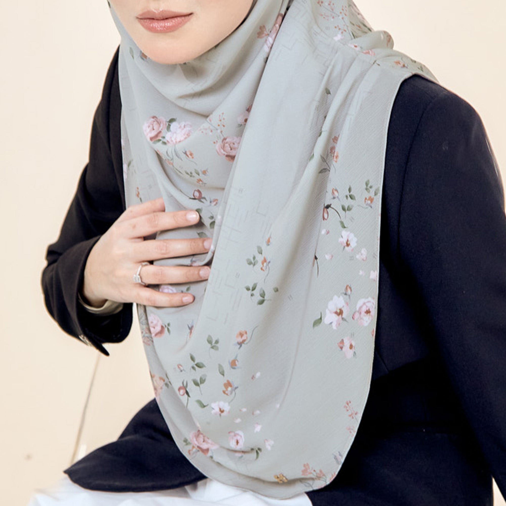 The hijab has pleats on the side (shoulder) and comes in Cutting options for LOT 1.