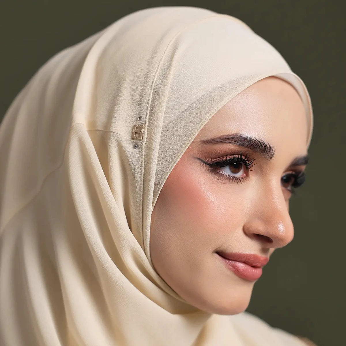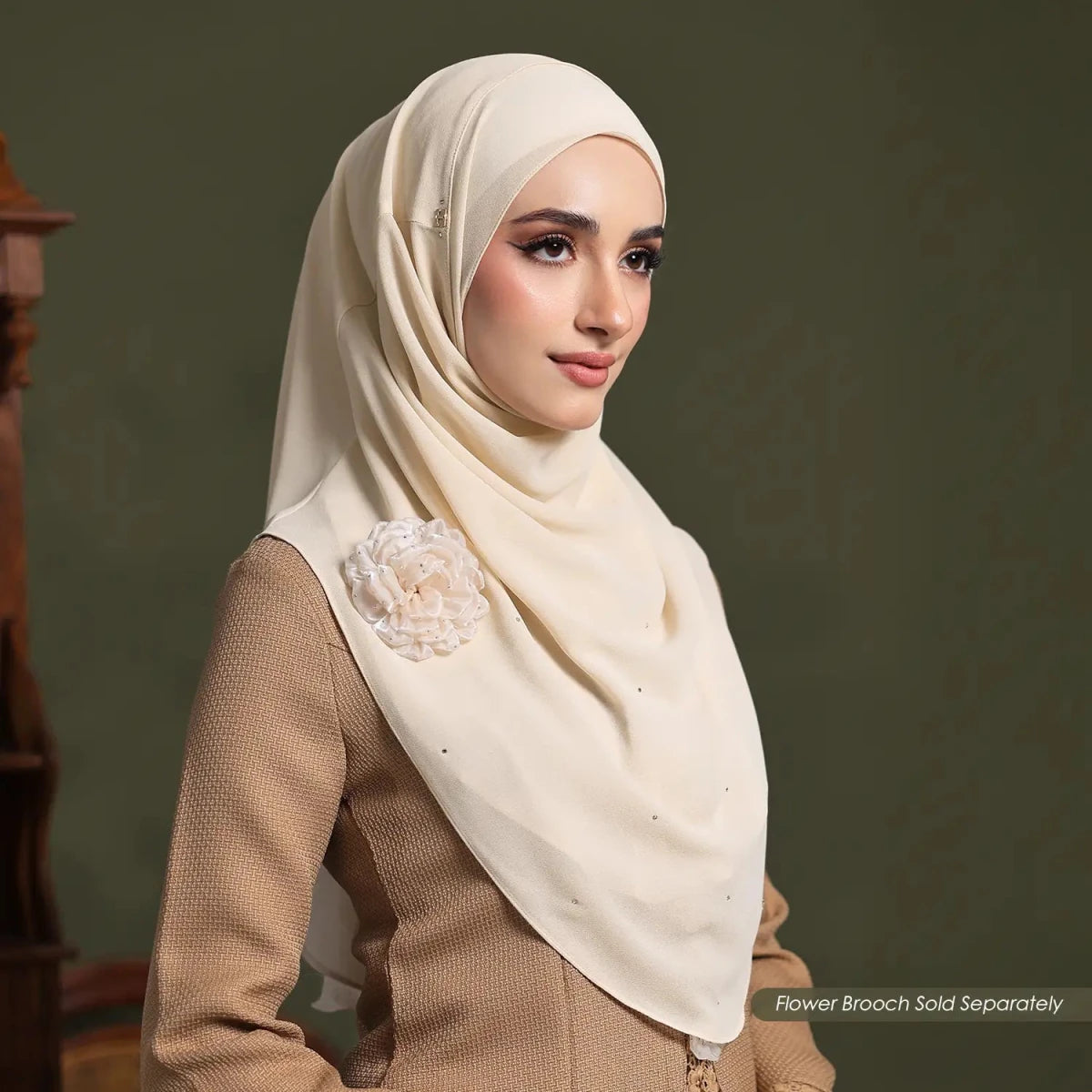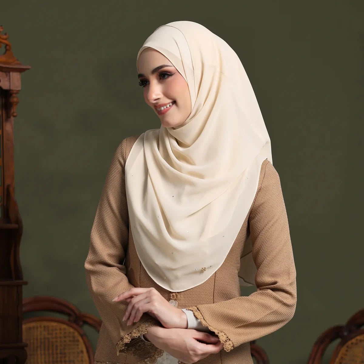 Meet Catalyna-So, our latest addition, a plain hijab subtly enhanced with fine cut crystals. Designed for those who appreciate minimal sophistication, it adds a polished and refined touch to any festive wardrobe. A timeless piece that elevates your Raya look effortlessly.