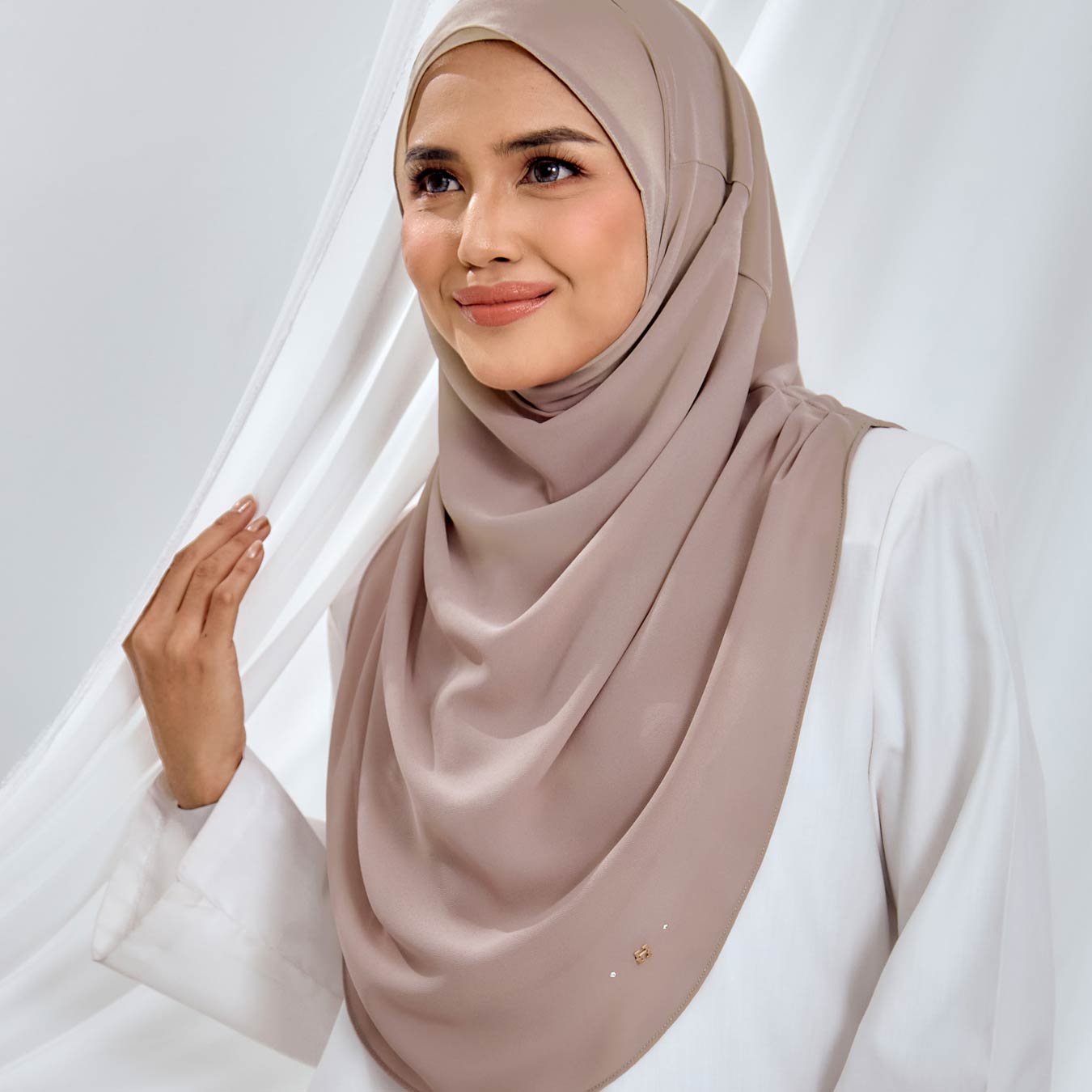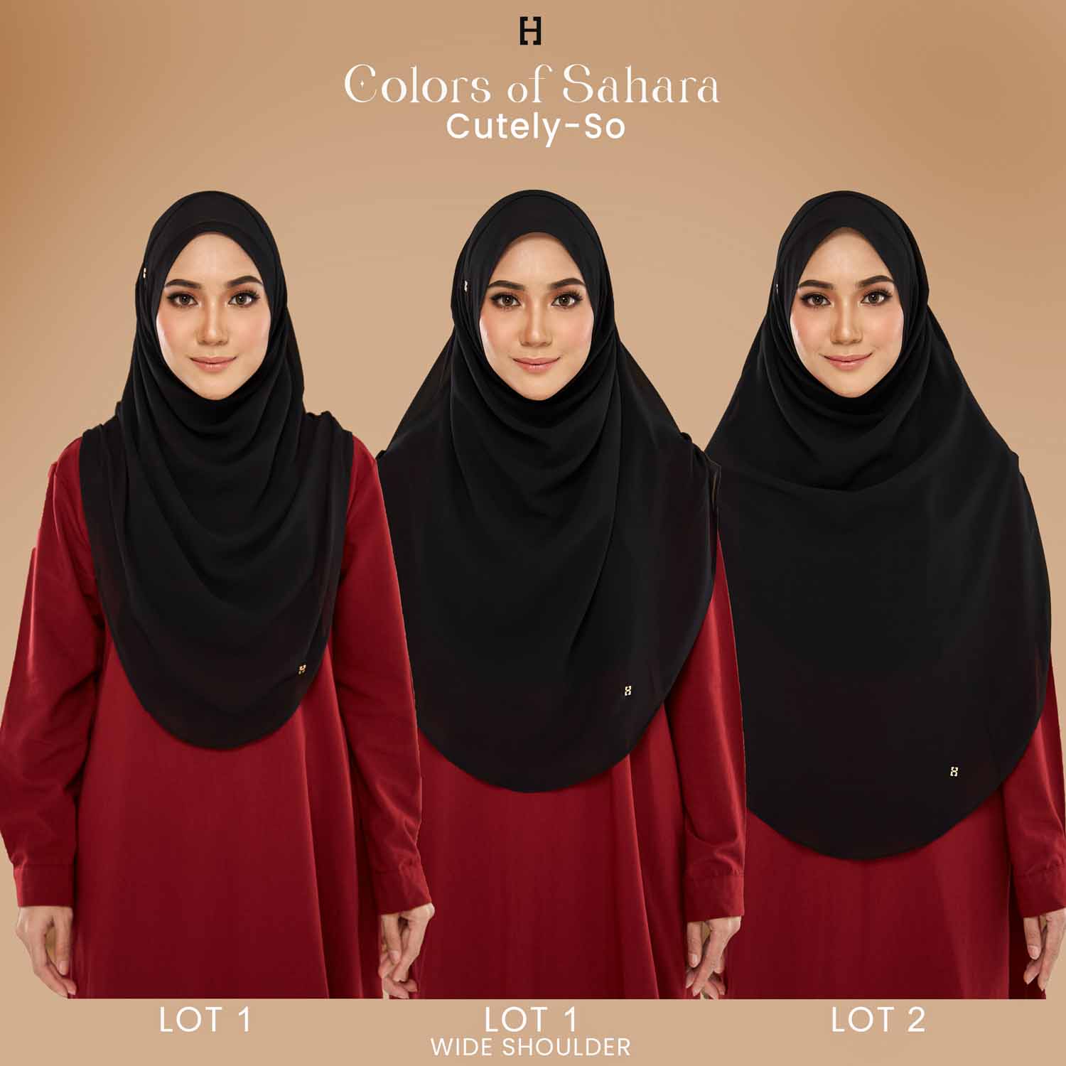• Details: It comes with a pair of our H pendant. This hijab as pleat at the side (shoulder). There are 2 layers made of Premium Heavy Chiffon to ensure the hijab is not see-through.