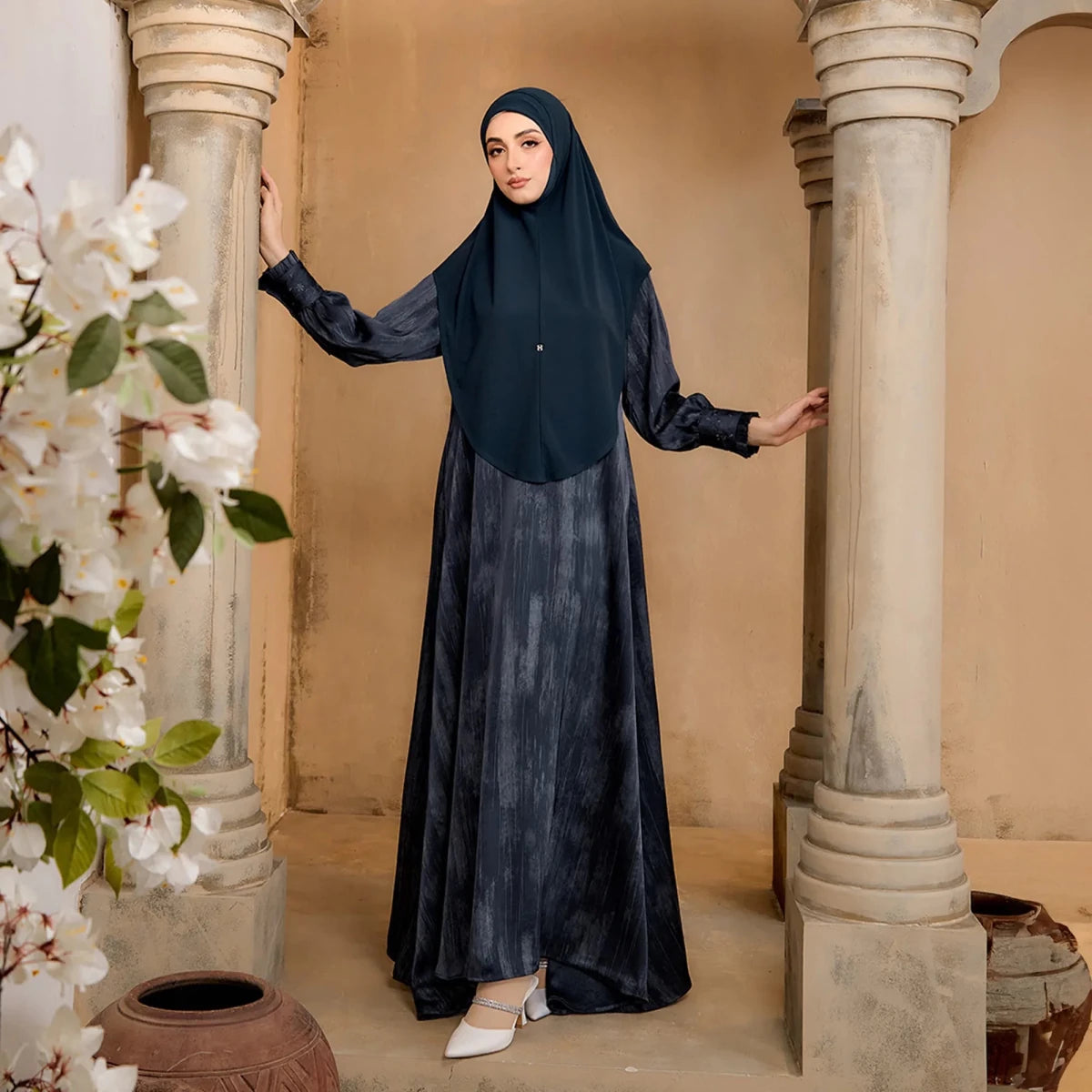 Just like the sea moves with grace and ease, this jubah flows naturally with the wearer, creating a silhouette that feels elegant, modest, and timeless.