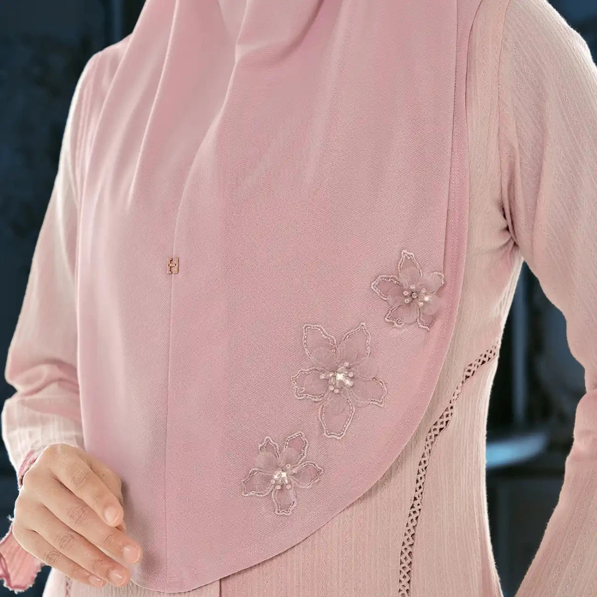 • Theme: Brings a touch of sophistication to everyday elegance. Each hijab features carefully arranged 3D floral appliques, delicate embroidery, and sparkling crystals that create a dimensional, luxurious look.