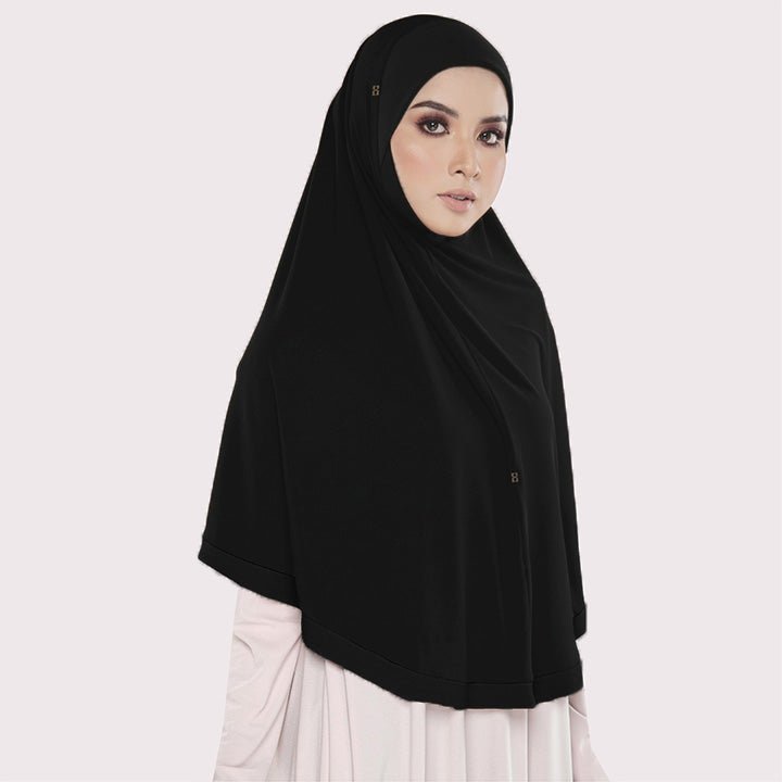 SO-MODEST WITH KAMILLY AWNING is a friendly-ibadah hijab. This hijab is suitable for Hajj & umrah traveler. This hijab is made from moss crepe and it is easy to wear.