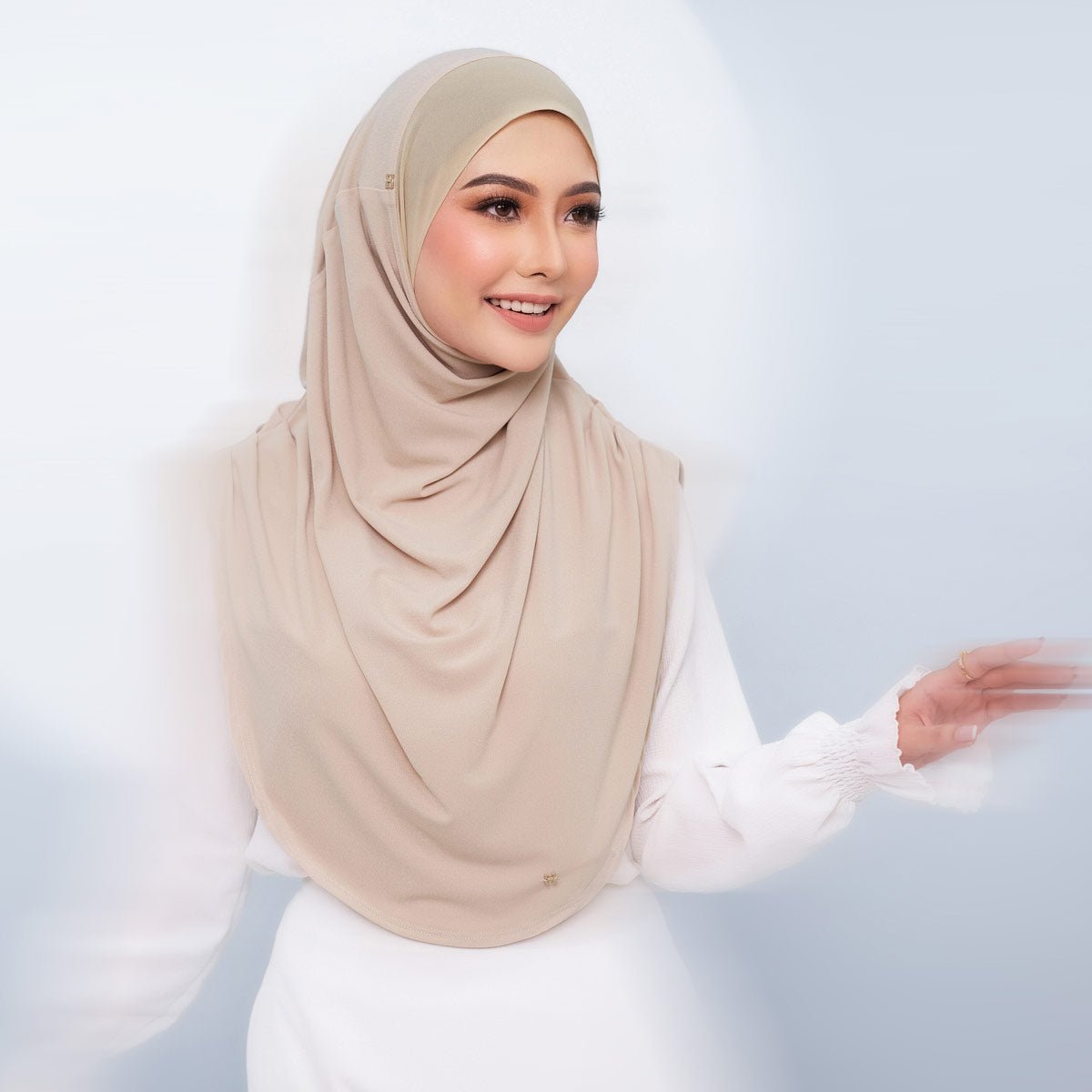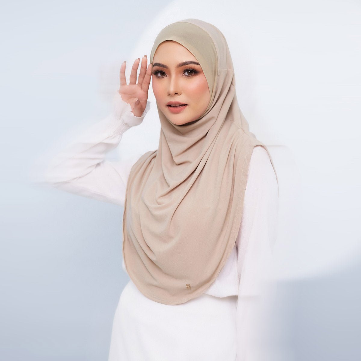 Details: Adorned with a pair of H rose gold pendants. The hijab has pleat at the side (shoulder)
