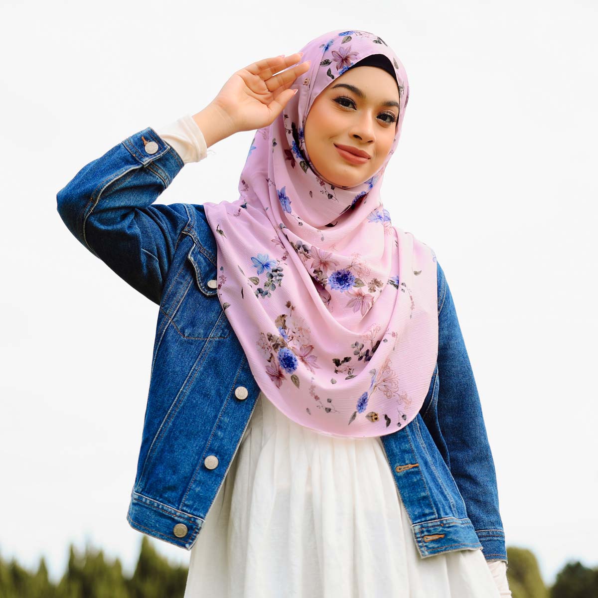 The hijab is designed with shawl facelook for the face part ie you will look like you are wearing a shawl, with the same material as the hijab body, giving a very seamless look. Tweely-So is made of Custom Printed Textured Chiffon. There is a layer inside made of Premium Heavy Chiffon to ensure the hijab is not see-through.