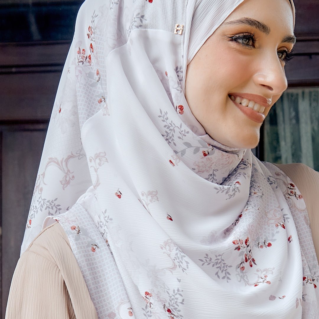 • Themes: Inspired by the delicate allure of cherry blossoms, this hijab features a graceful blend of soft hues and intricate patterns that exude sophistication.