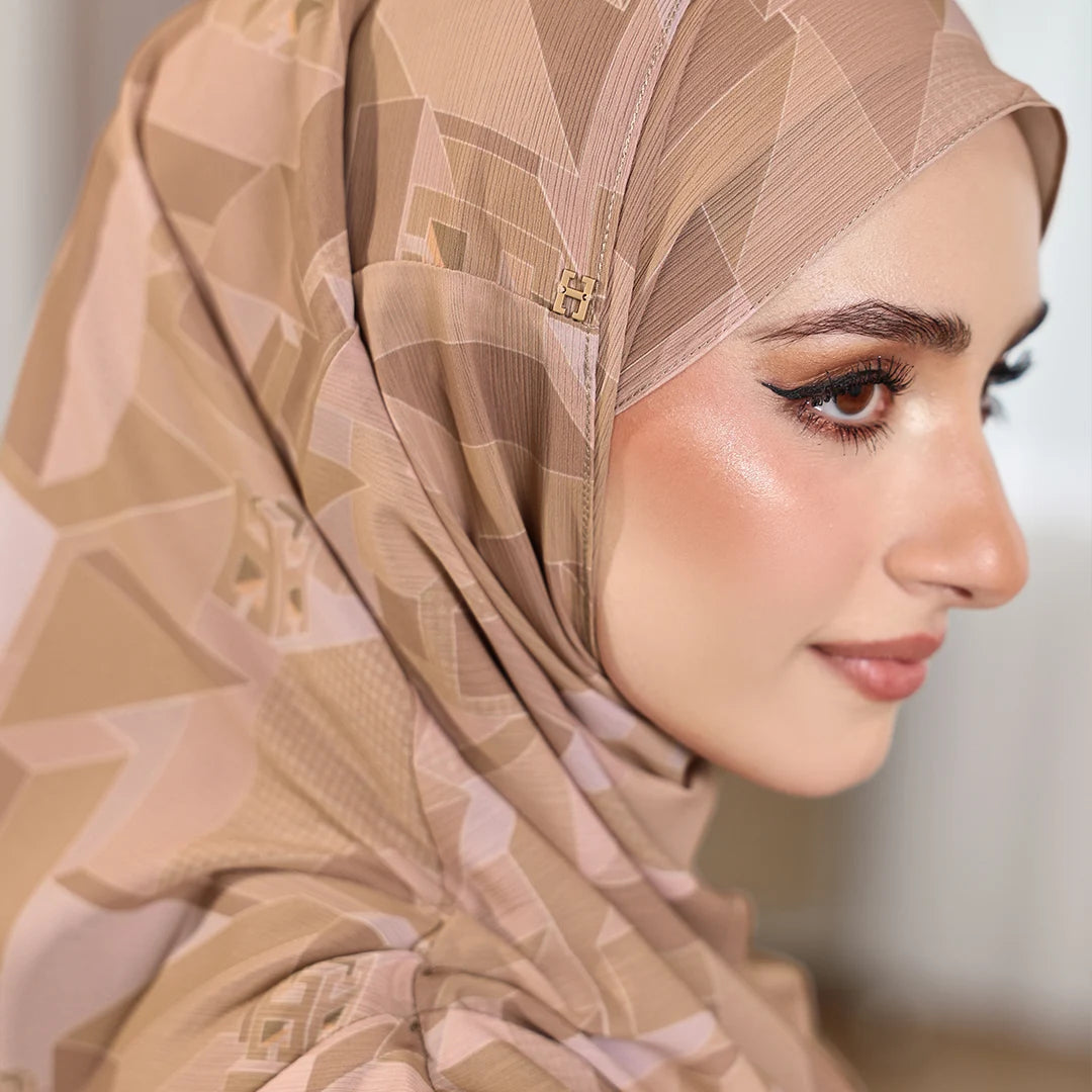 Tweely So Basic Cityscape features the H monogram (Hegira) in a larger scale, structured within a grid inspired by a modern cityscape, symbolising the identity of the Hegira woman in a world that is organised and full of challenges.