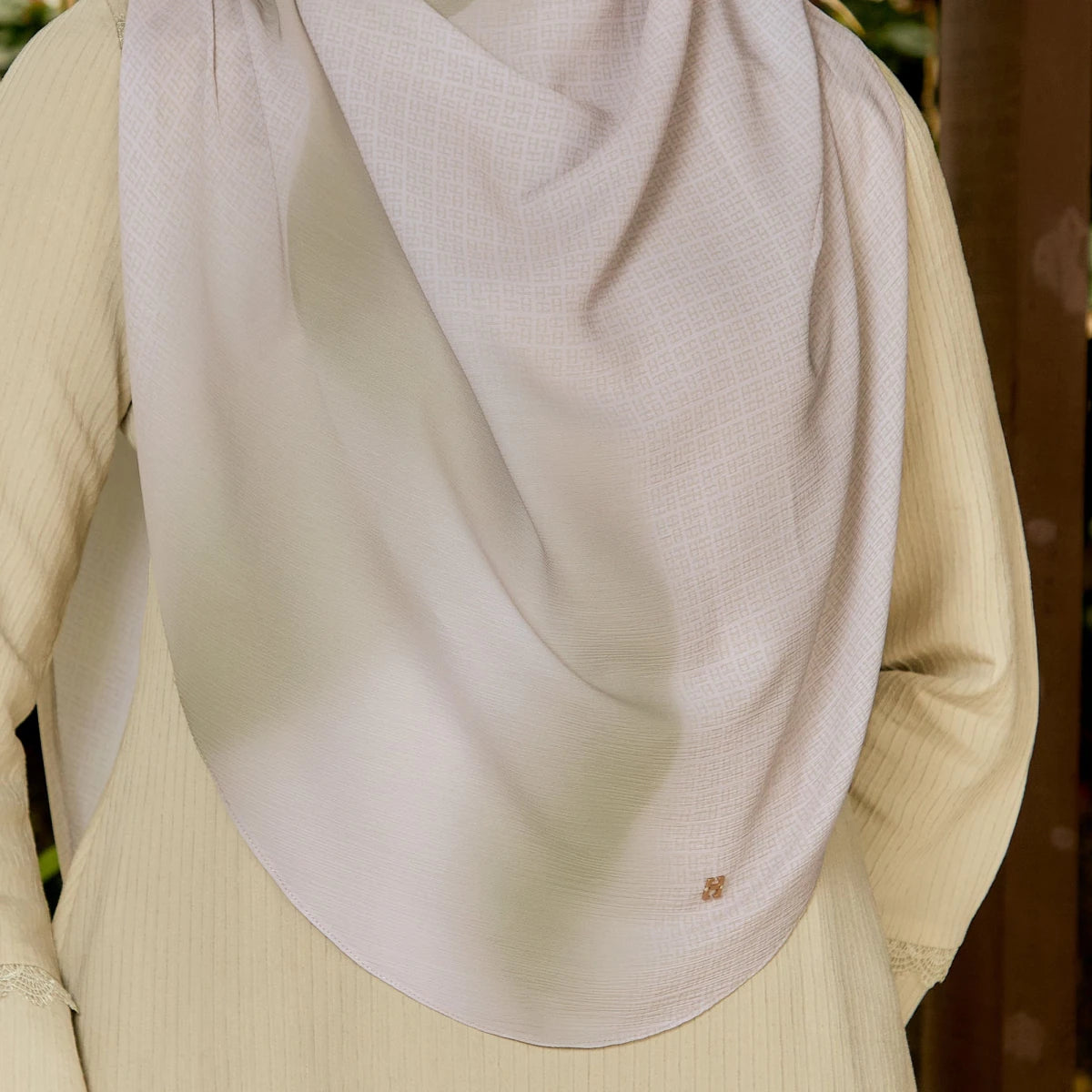 This design is highlighted with a delicate floral border with batik-inspired touches along the edge, adding a subtle yet charming touch that makes the hijab stand out without being too busy.