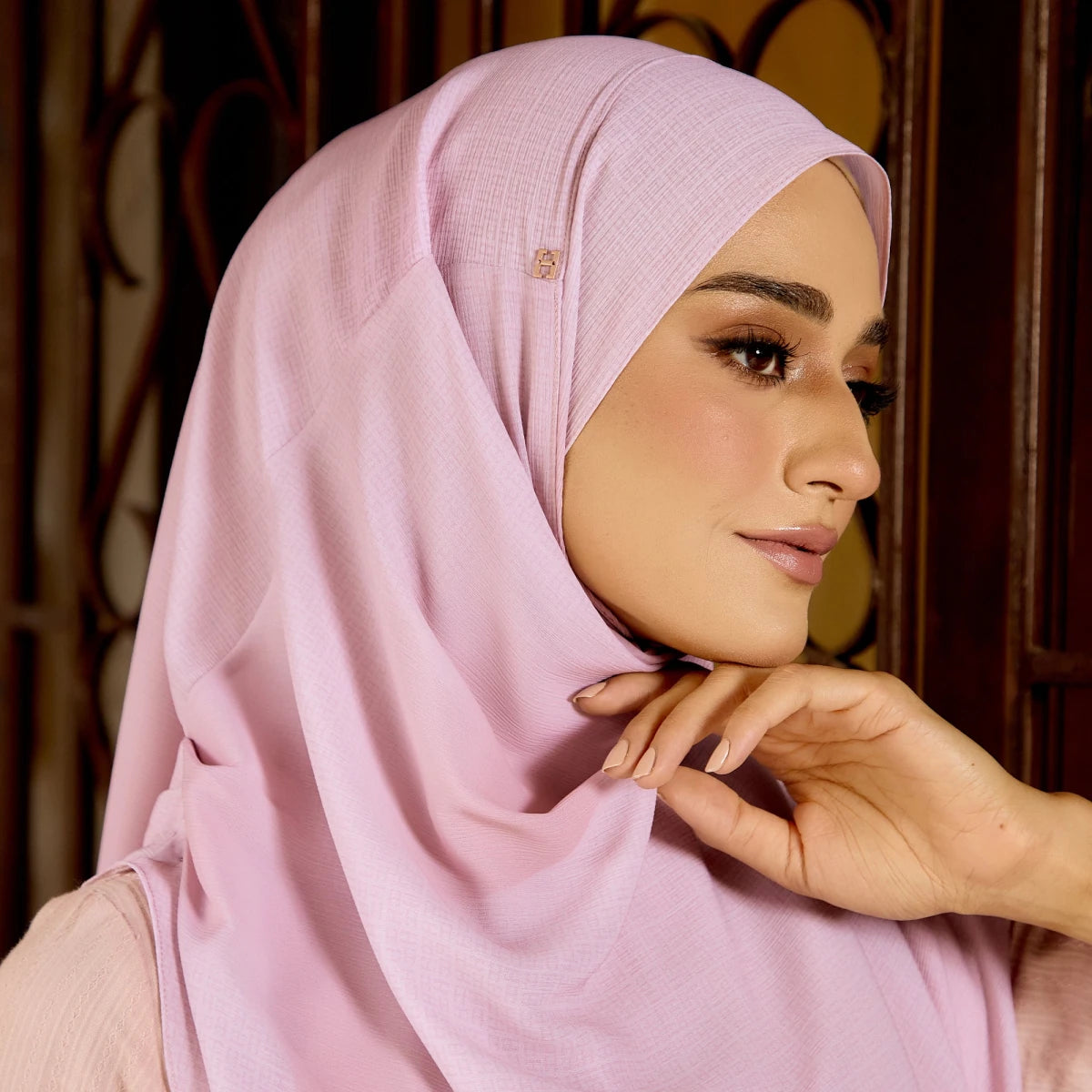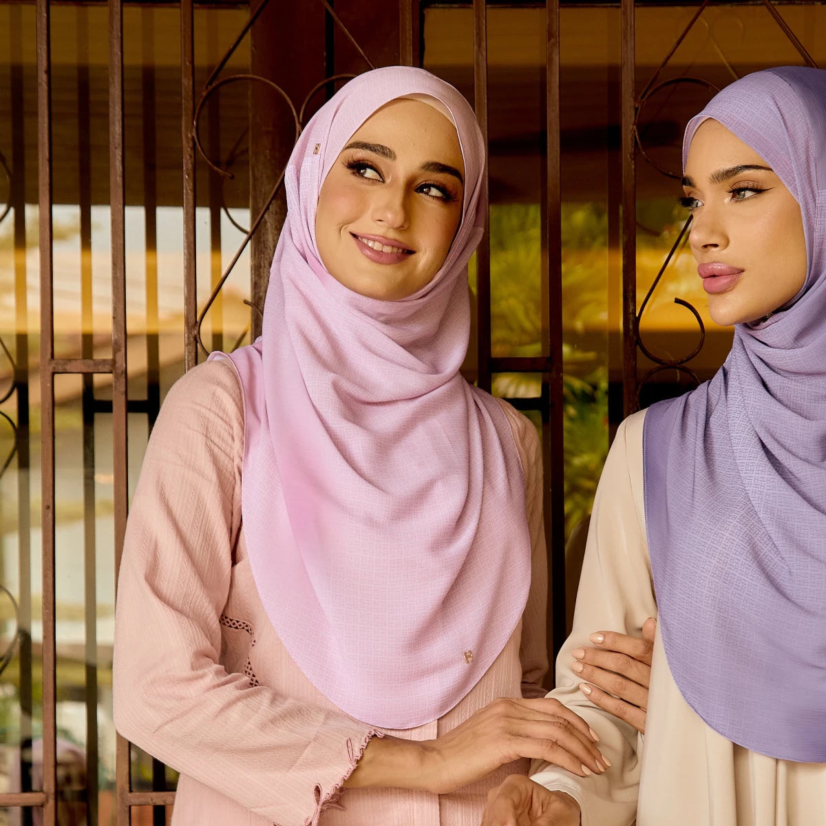 This design is highlighted with a delicate floral border with batik-inspired touches along the edge, adding a subtle yet charming touch that makes the hijab stand out without being too busy.