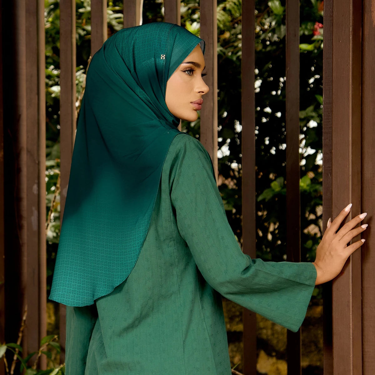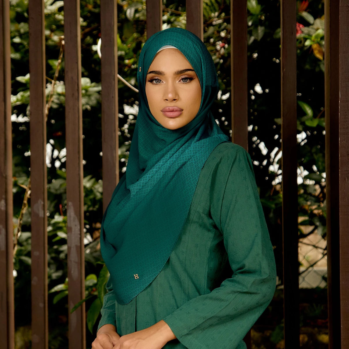 This design is highlighted with a delicate floral border with batik-inspired touches along the edge, adding a subtle yet charming touch that makes the hijab stand out without being too busy.