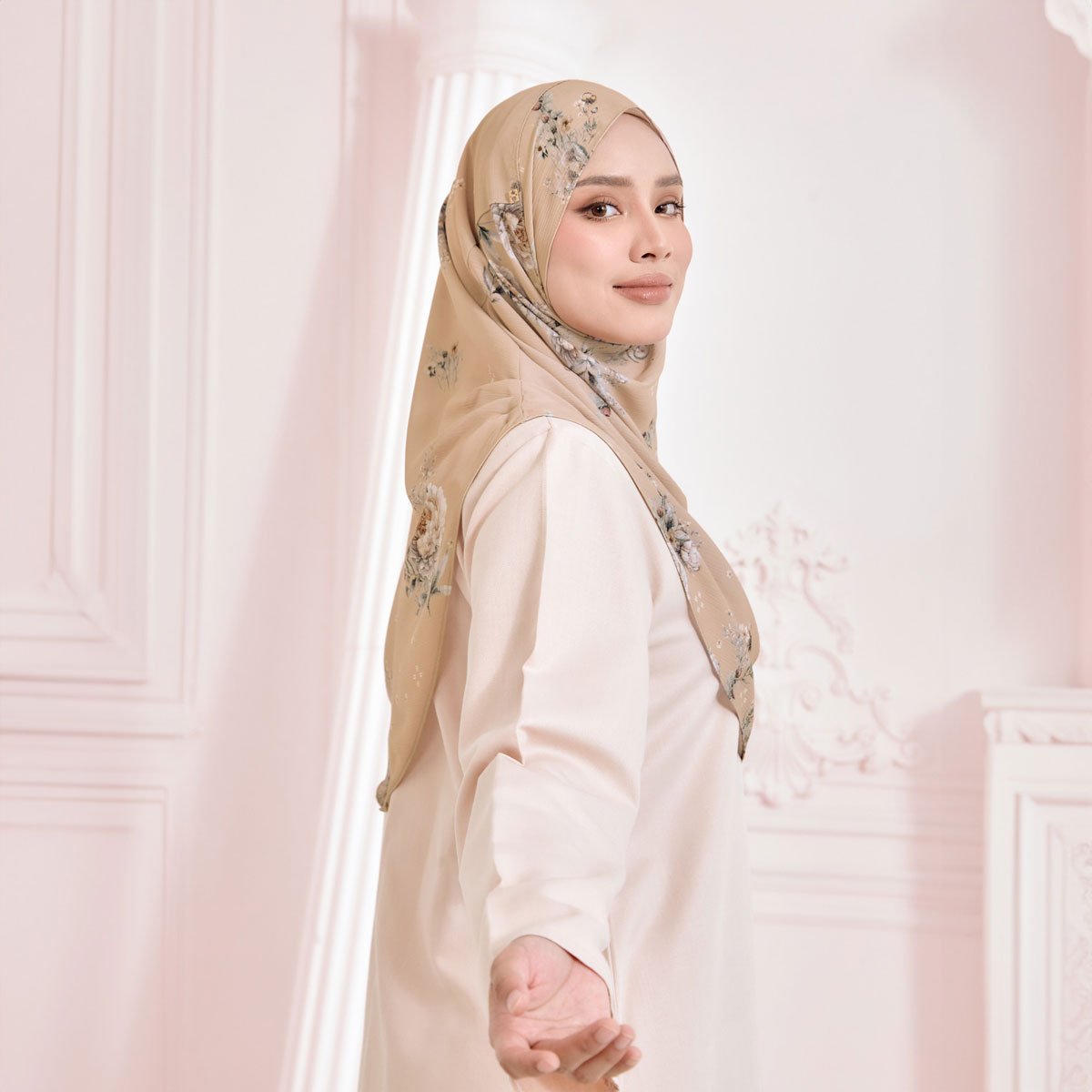 • Materials: Body & Awning - Custom Printed Textured Chiffon | There is a layer inside made of Premium Heavy Chiffon to ensure the hijab is not see-through.