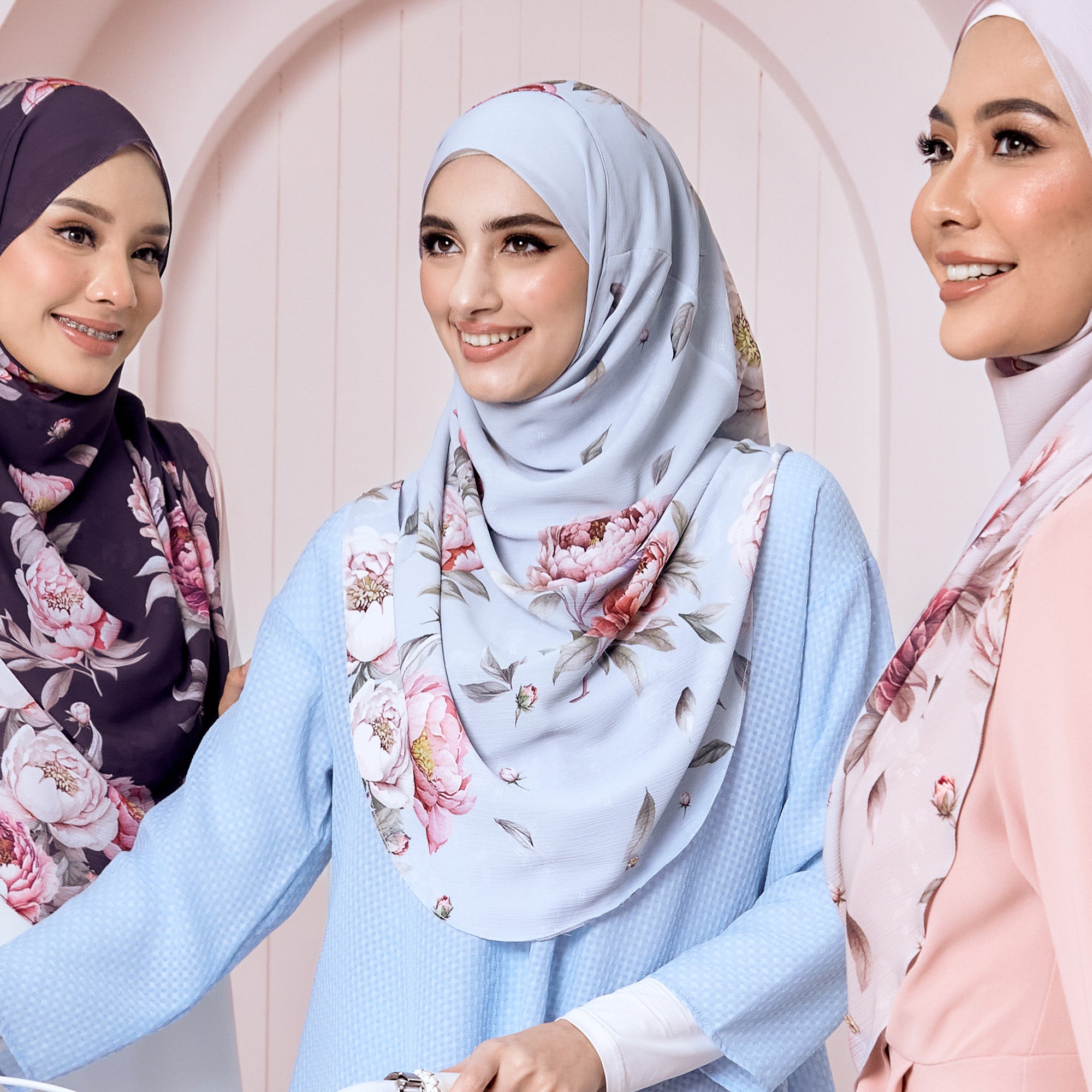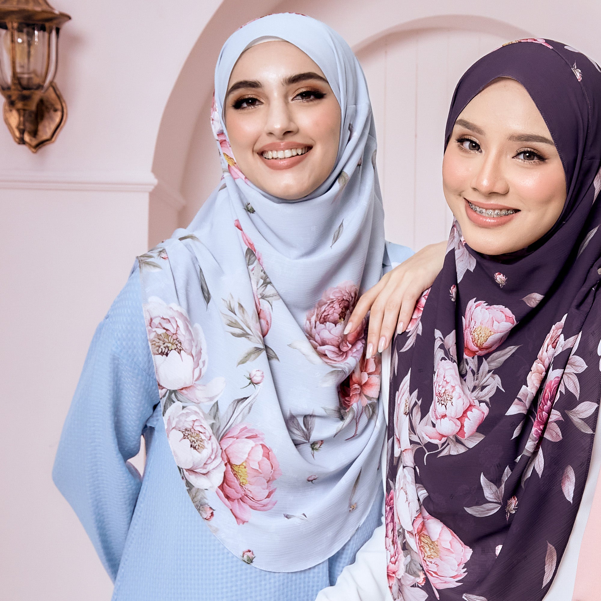 Materials: Body & Awning - Custom Printed Textured Chiffon | There is a layer inside made of Premium Heavy Chiffon to ensure the hijab is not see-through.