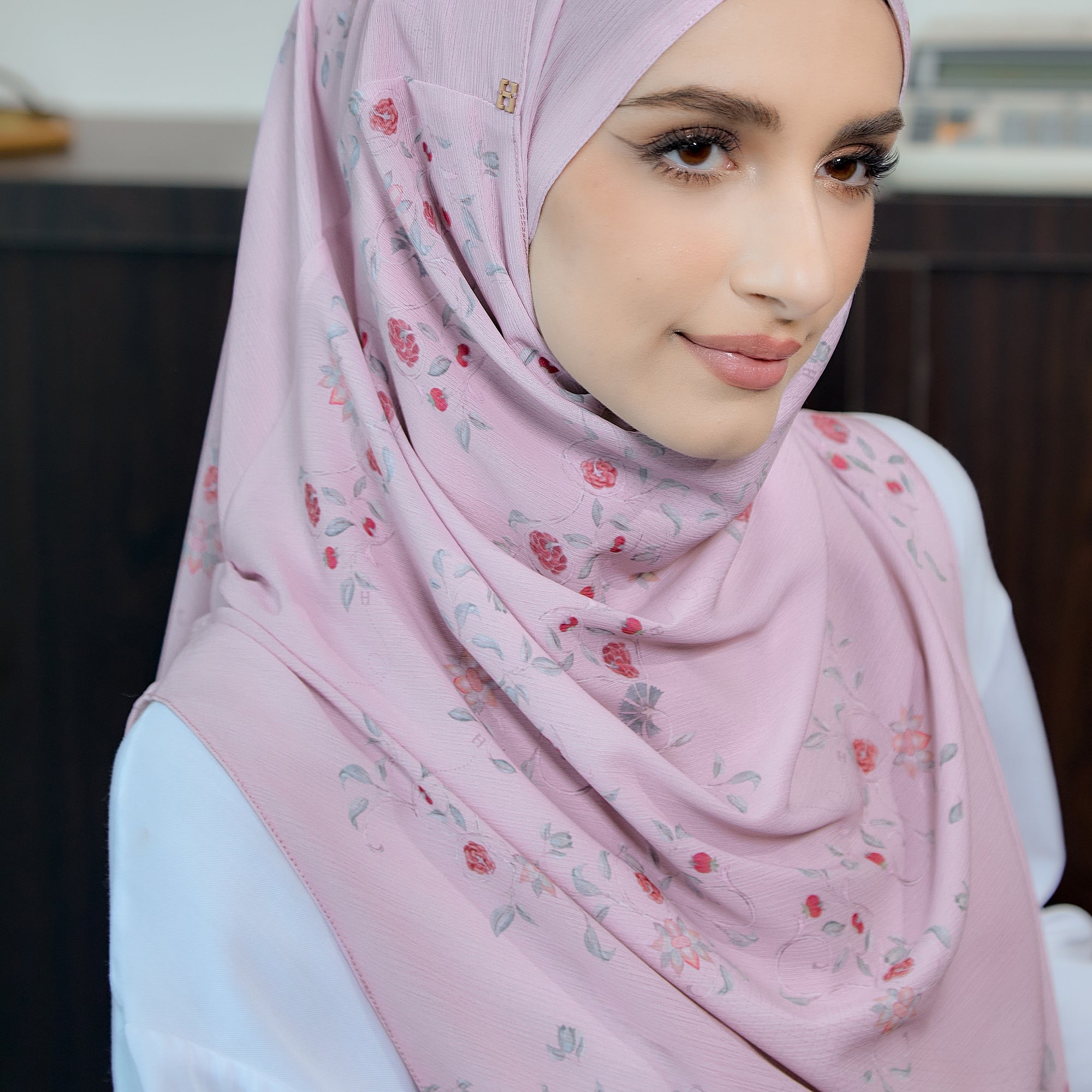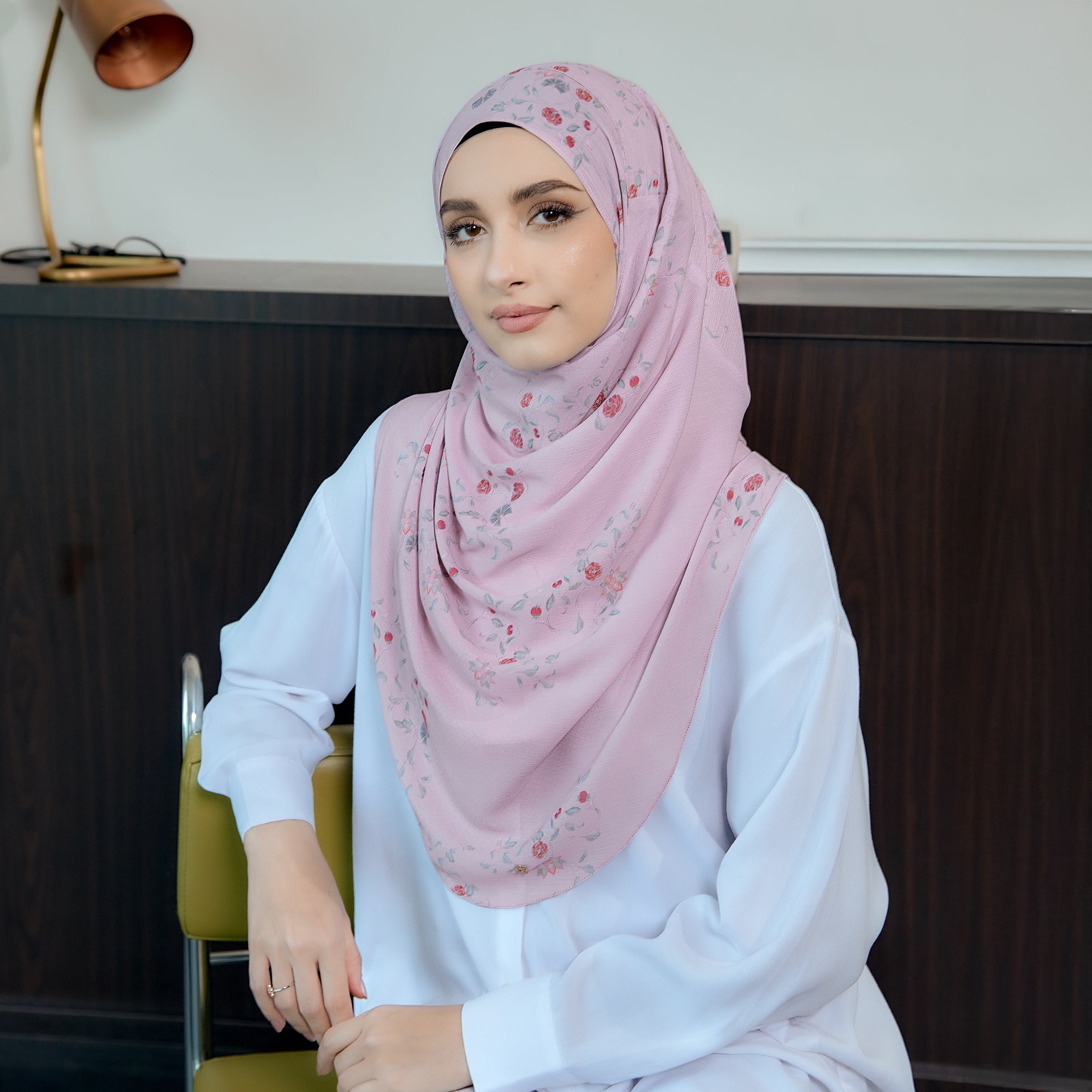 Themes: Inspired by the delicate allure of cherry blossoms, this hijab features a graceful blend of soft hues and intricate patterns that exude sophistication.
