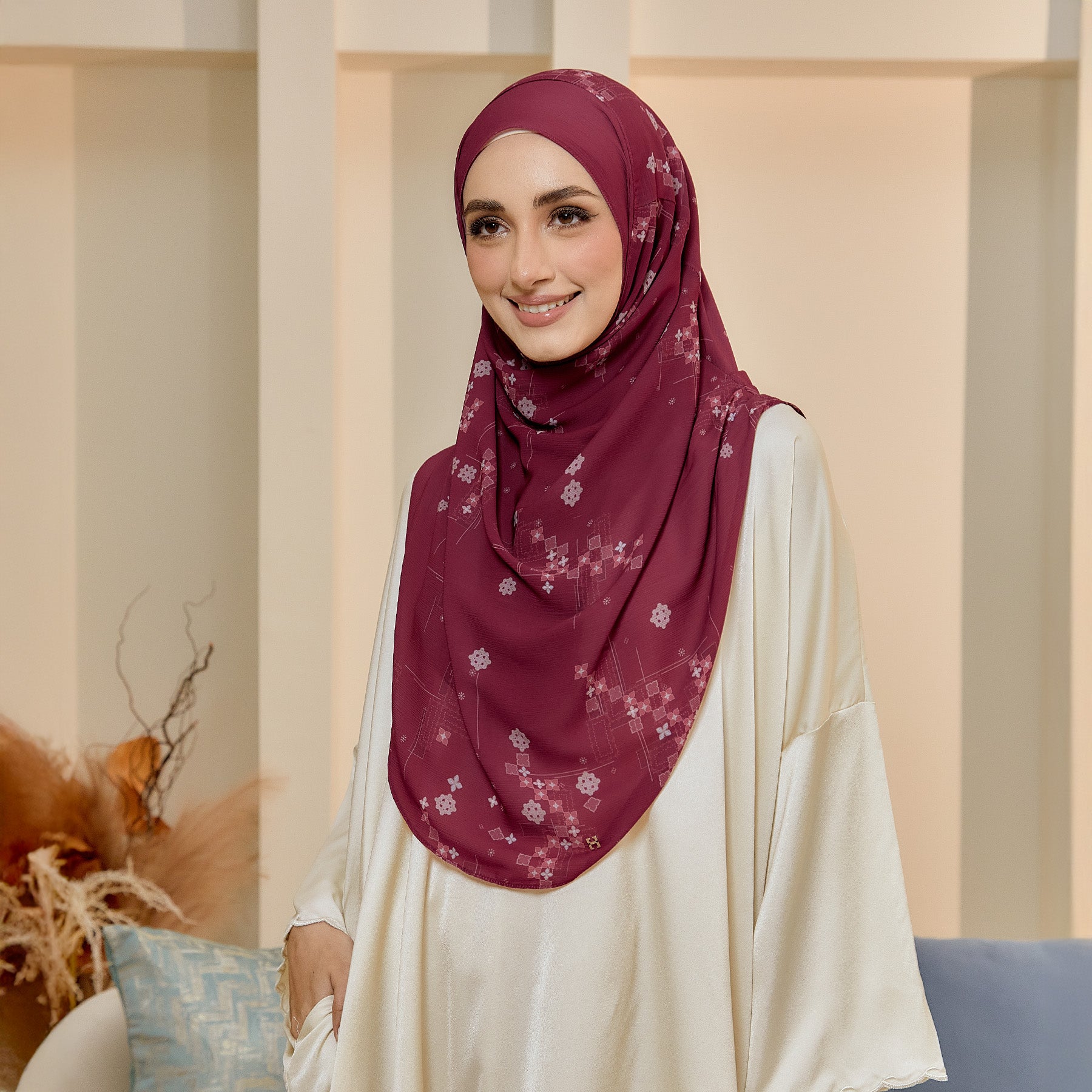 • Materials: Body & Awning - Custom Printed Textured Chiffon | There is a layer inside made of Premium Heavy Chiffon to ensure the hijab is not see-through.