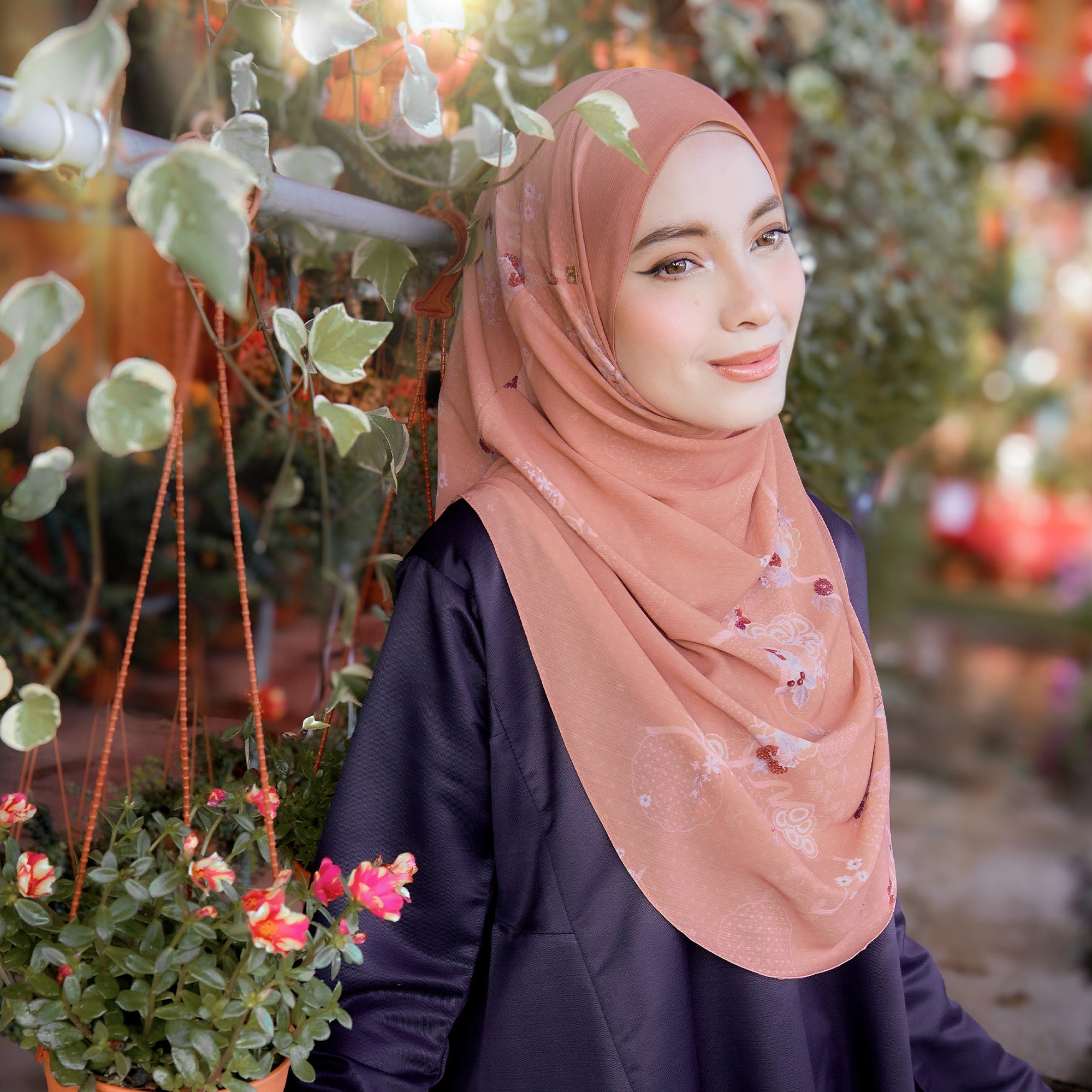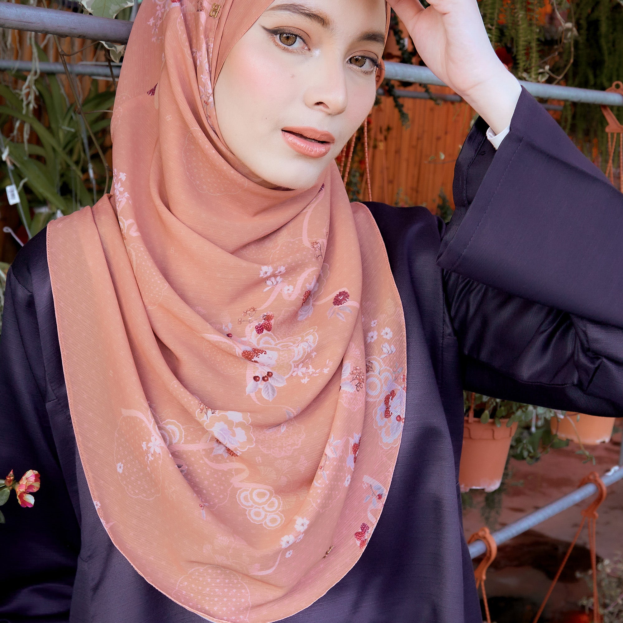 • Materials: Body & Awning - Custom Printed Textured Chiffon | There is a layer inside made of Premium Heavy Chiffon to ensure the hijab is not see-through.