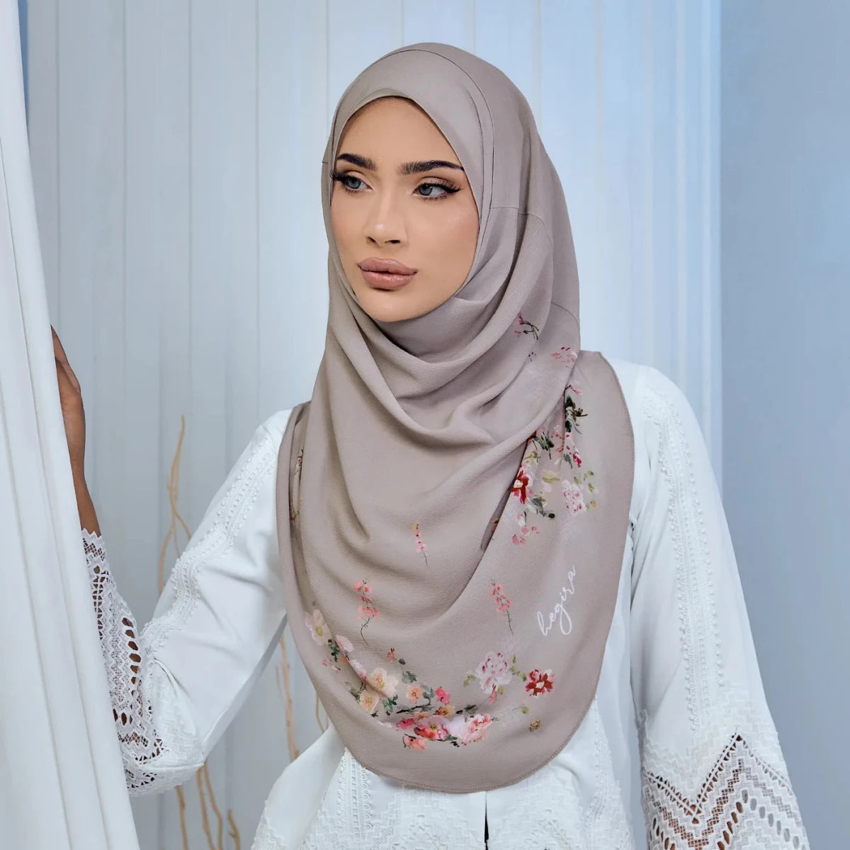 Instant / Slip-on hijab. No pin. No brooches Modest length with slim cutting on shoulder.
