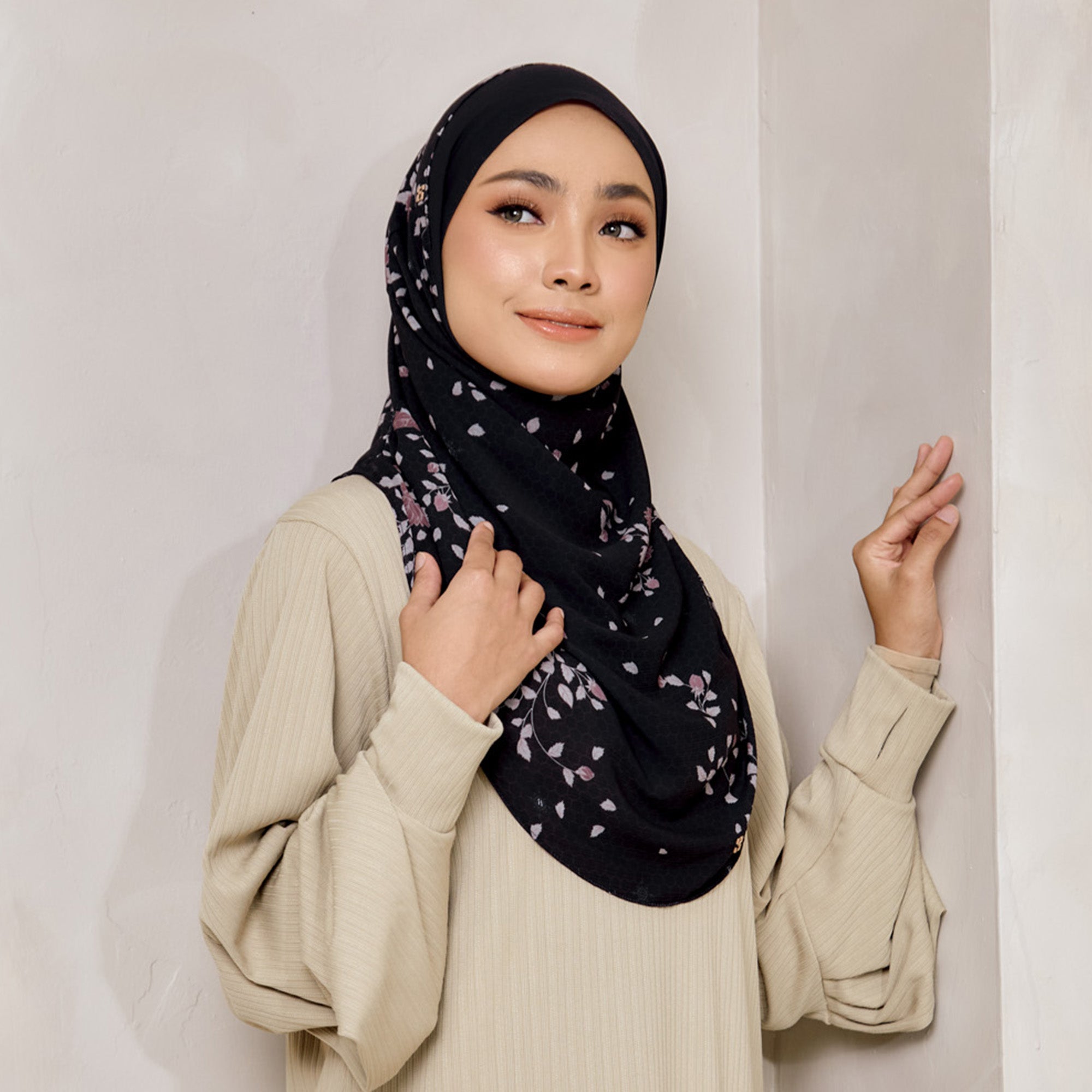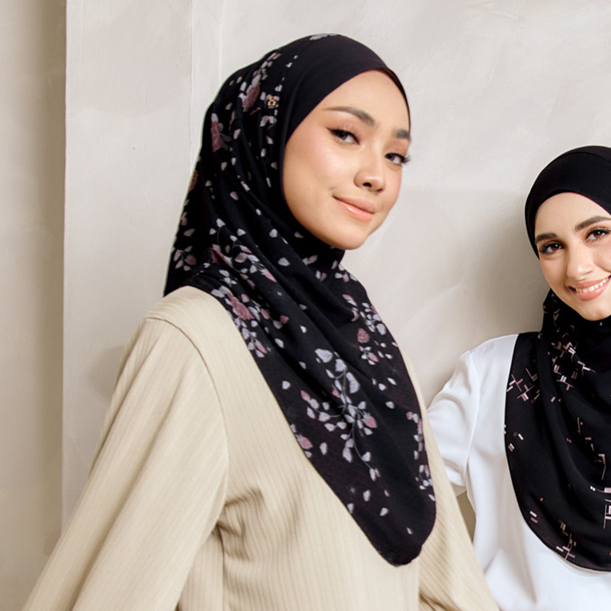 Materials: Body & Awning - Custom Printed Textured Chiffon | There is a layer inside made of Premium Heavy Chiffon to ensure the hijab is not see-through.